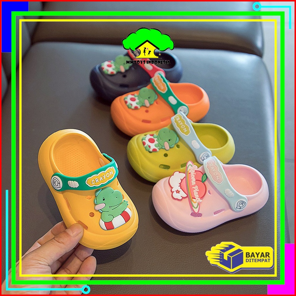 Mi-s39 Sandal Sepatu Anak Dengan Tali Belakang Bahan Eva Motif Dinosaurus Lucu Anti Slip Sendal Peach Waterpoof Import C