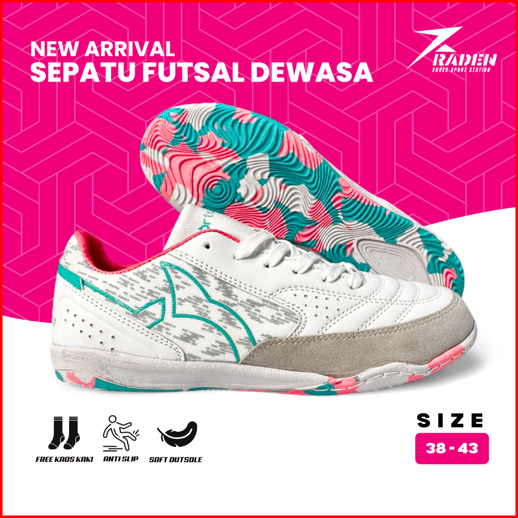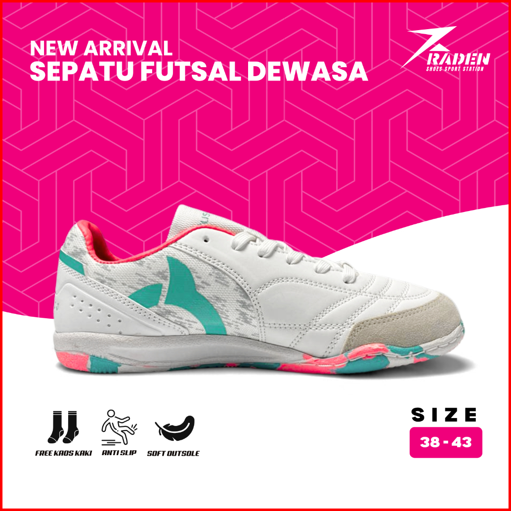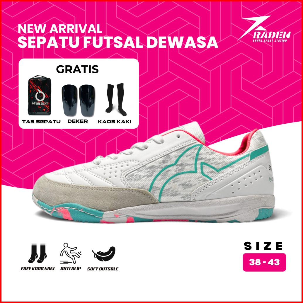 Paket Kumplit - Ortuseight Sepatu Futsal Jogosala Vanquish - Light Grey Ultra Teal Sepatu Futsal Dewasa Size 38-43