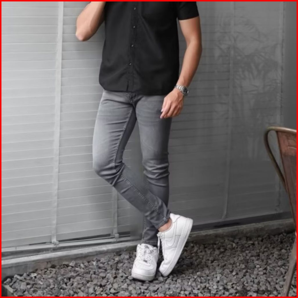Celana Panjang Skinny Jeans Slim Fit Melar Cocok Buat Main Kerja Nongkrong - Celana Jeans Pria Polos