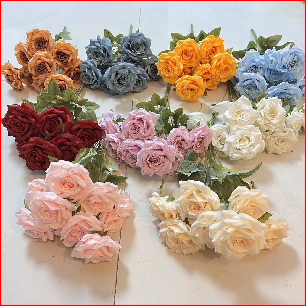 Bunga Mawar Artificial 9x Bunga Plastik Bunga Hiasan Ruang Tamu Bunga Artificial Bouquet Bunga