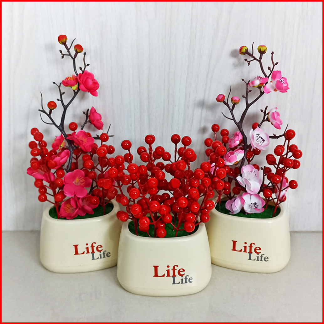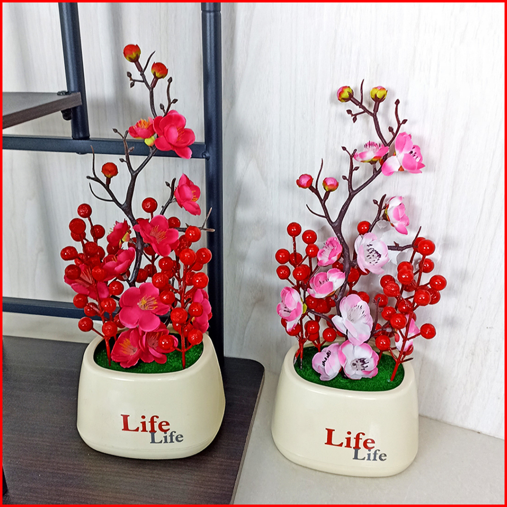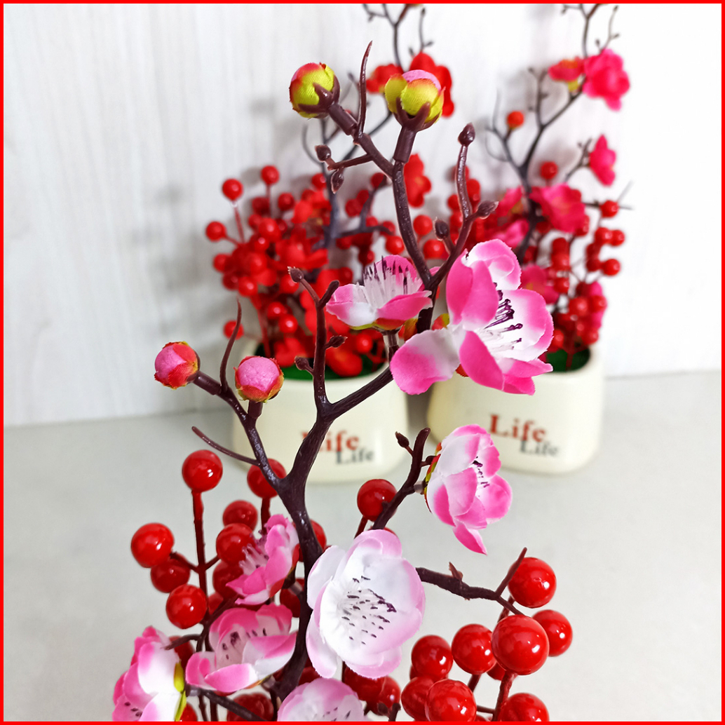 Pot Bunga Sakura Hias Pot Artifical Flower Winterberry Bulat Pajangan Meja Dekorasi Rumah Pbp167