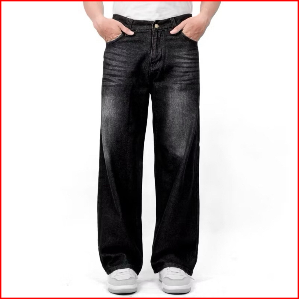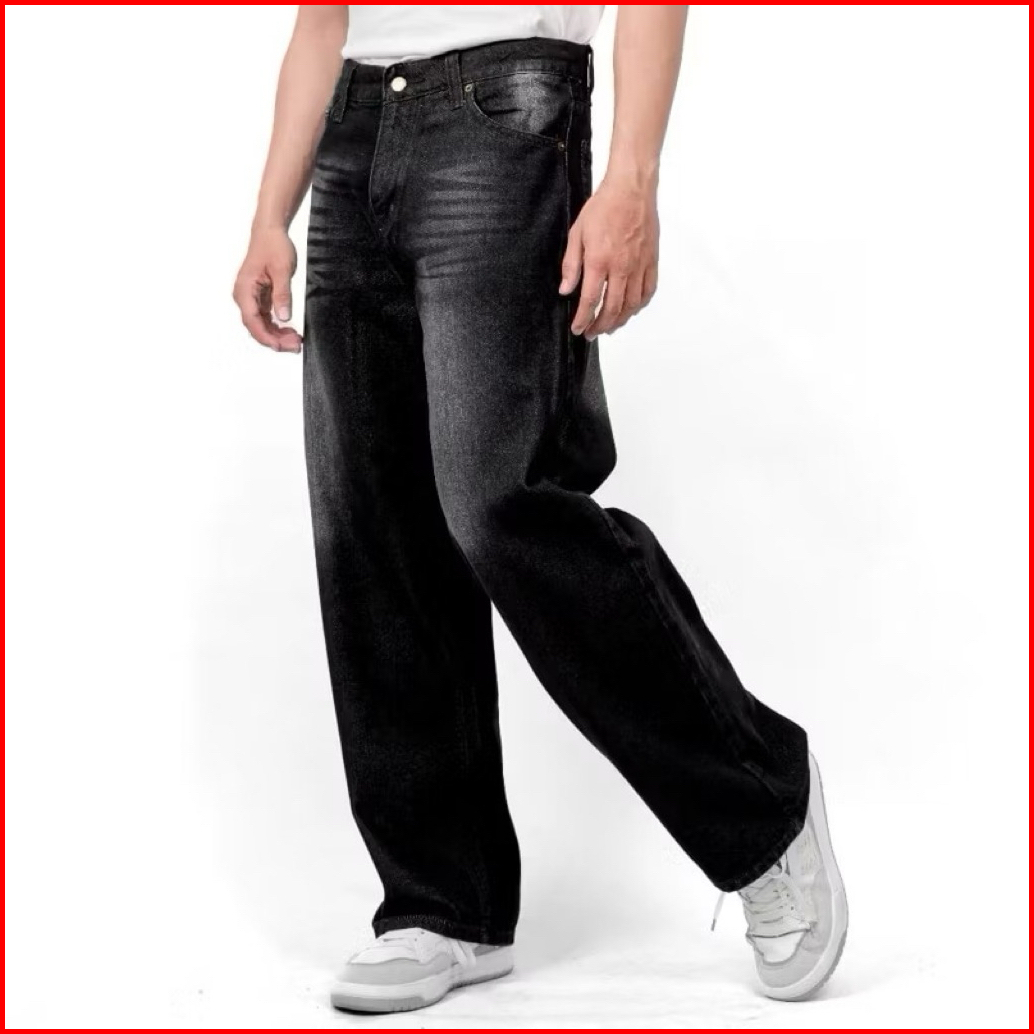 Witro - Celana Jeans Wide Leg Wisker Lebar Gombrong Skena Pria Jeans Loose Fit Jumbo Big Streetwear Baggy Style