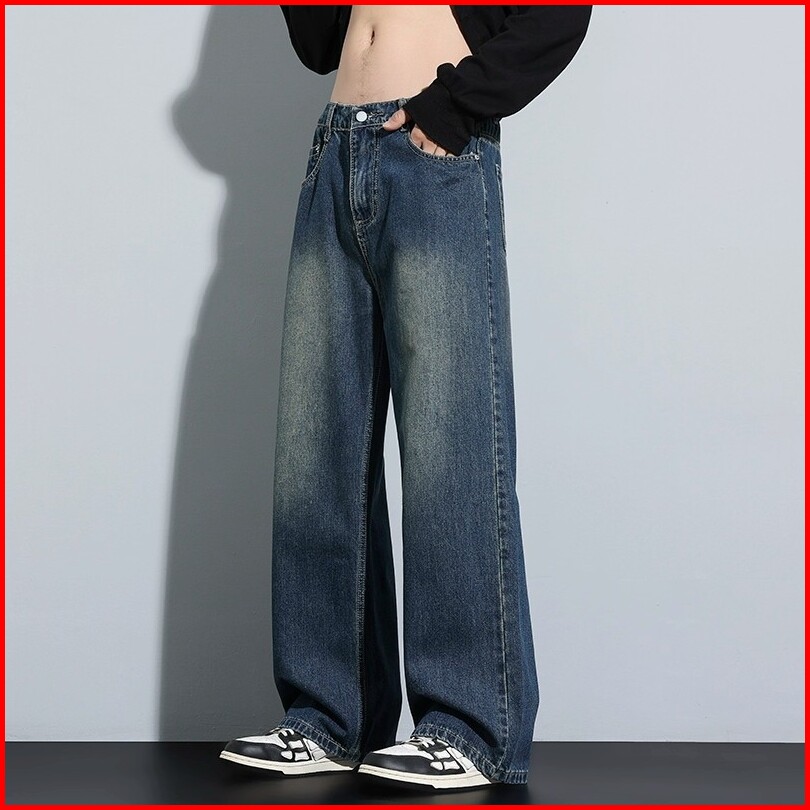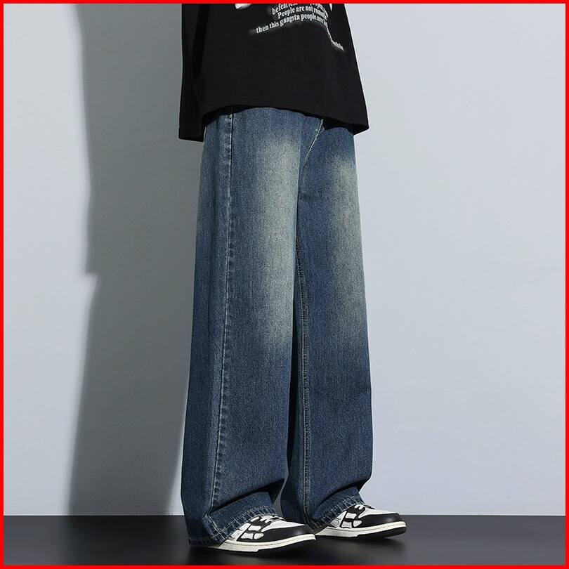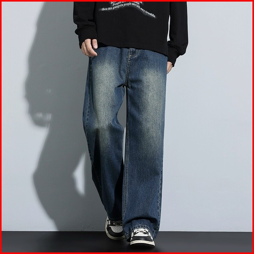 Celana Jeans Pria Biru Panjang Baggy Pants Korean Style Premium Denim Gombrong Casual Fashion Jens
