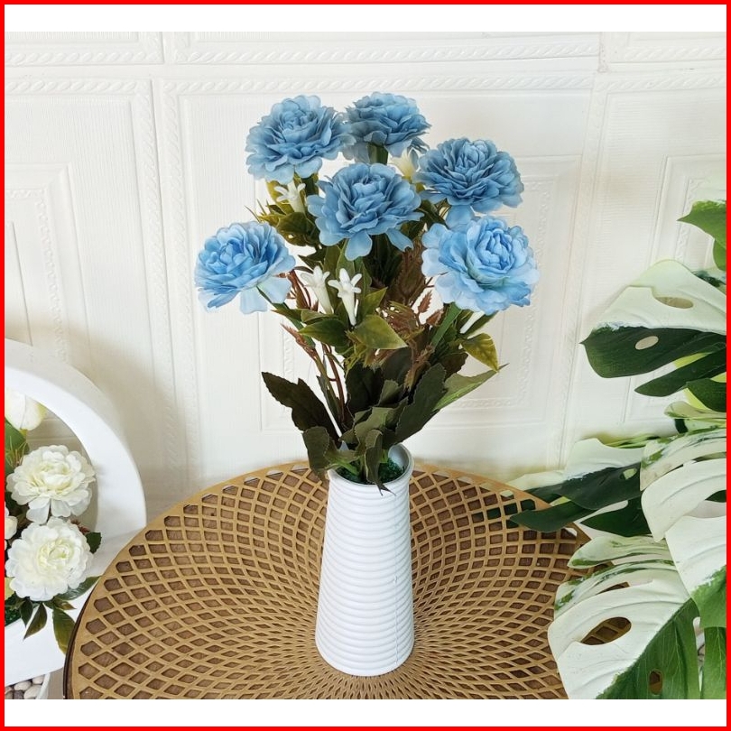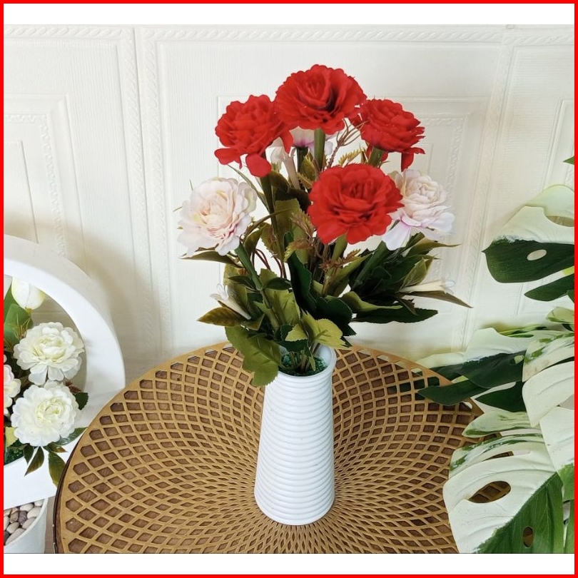 Bunga Mawar Artificial Vas Ulir Panjang Bunga Hiasan Meja