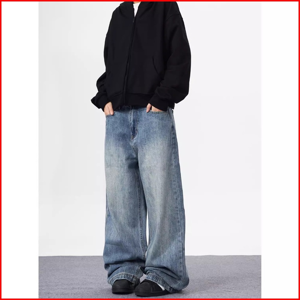 Celana Jeans Pria Baggy Jumbo Cowok Straight Skena Celana Panjang Laki Laki Korean Style Oversize Casual Vintage Dewasa