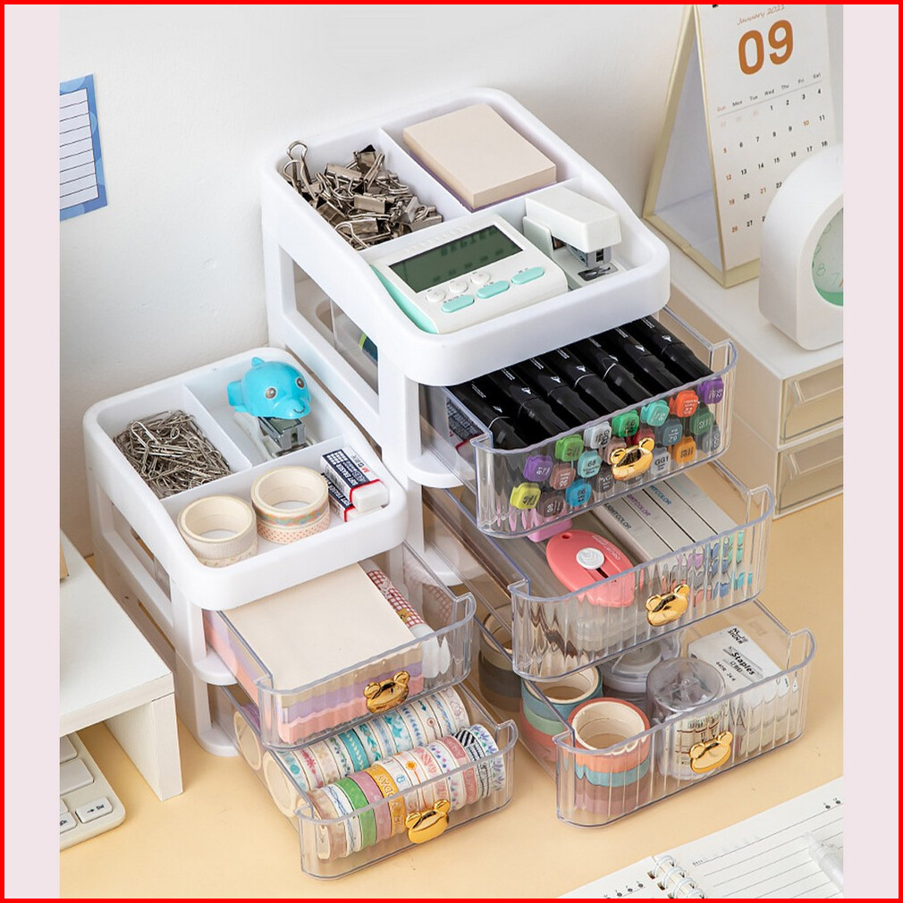 Rak Kosmetik Serbaguna 3 Laci Tempat Make Up Storage Box Bear Rak Kotak Penyimpanan Alat Tulis Desktop Drawer Rak Susun