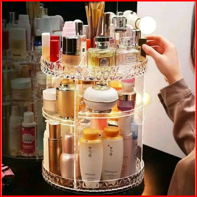 Rak Kosmetik Putar Akrilik Multifungsi Transparan