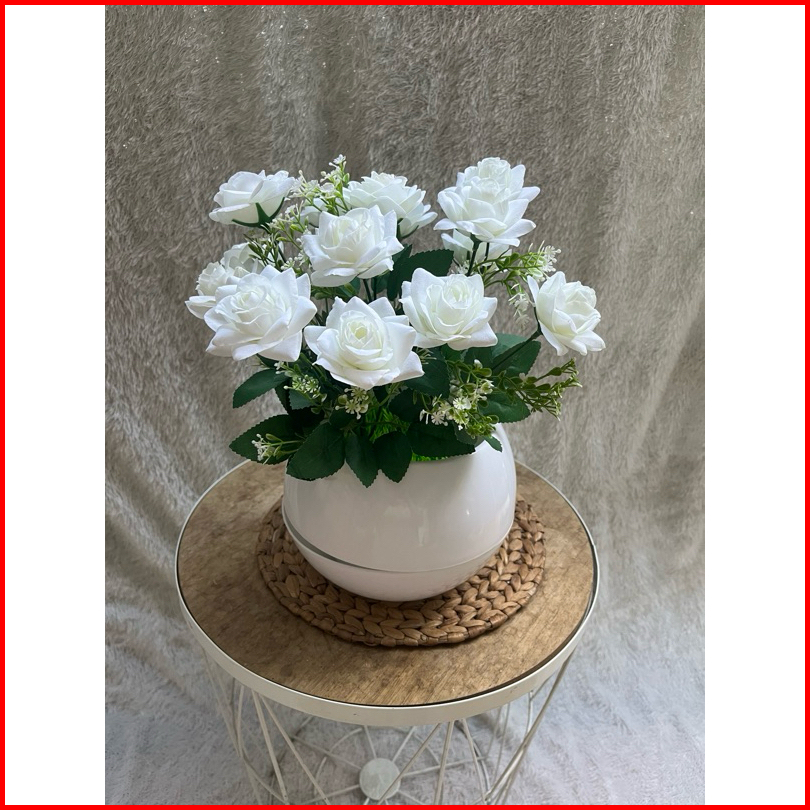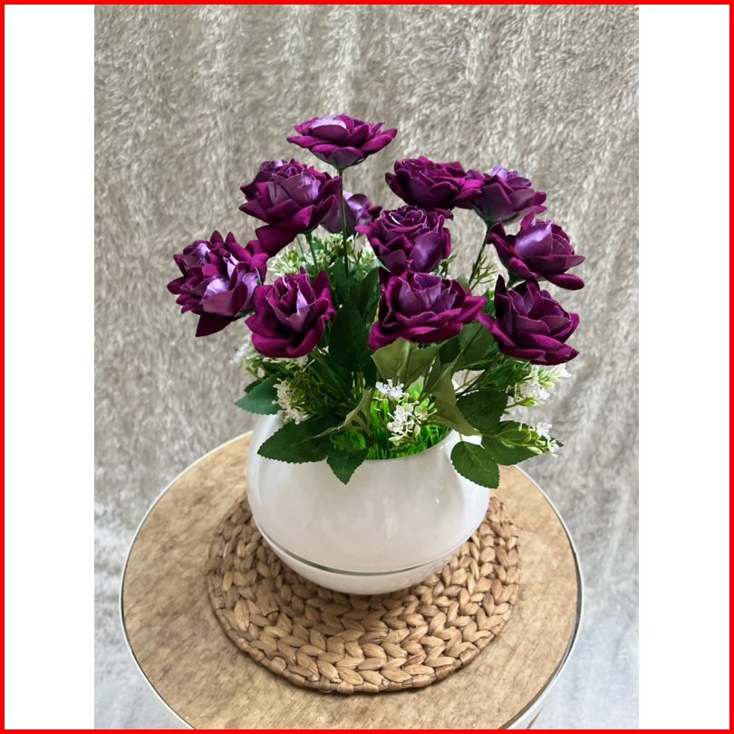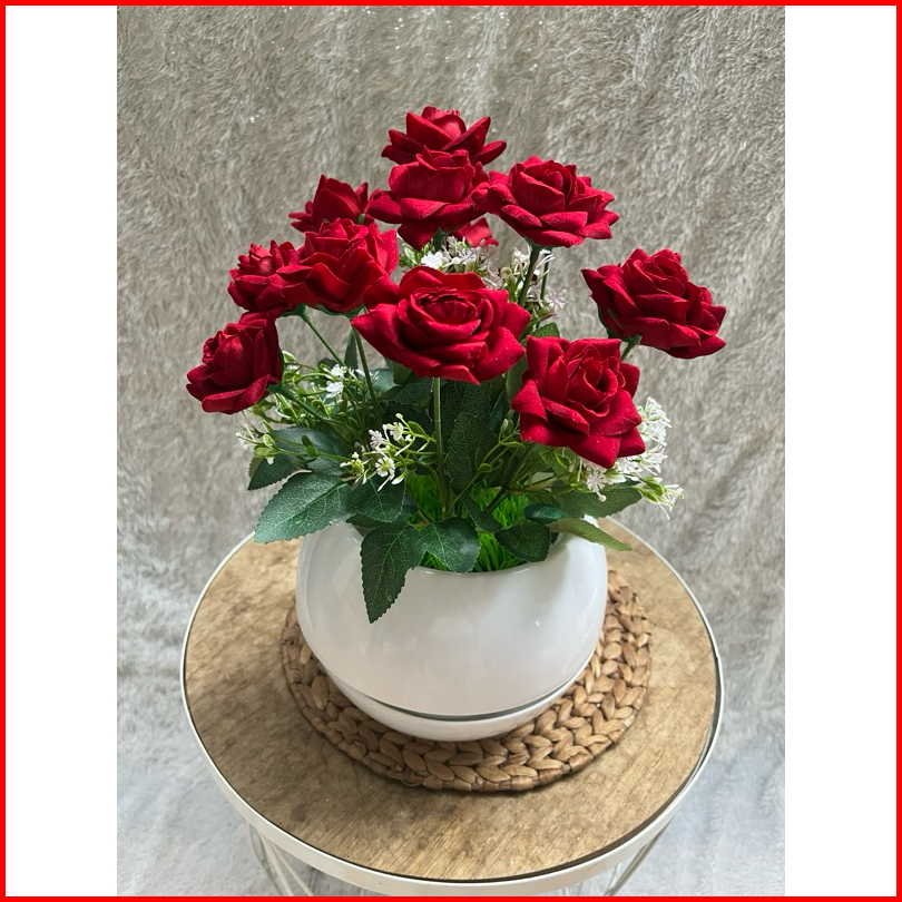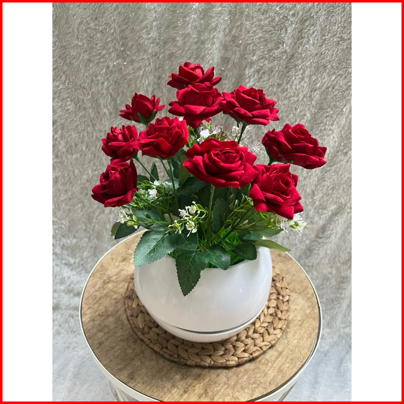 Rangkaian Bunga Mawar Bludru Kuntum 14 Berikut Vas Bola Or Bunga Meja