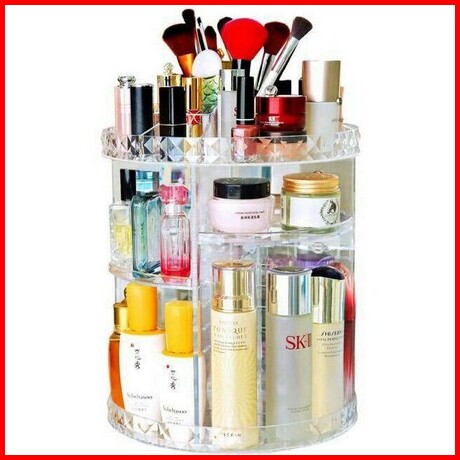 Rak Kosmetik Acrylic Putar 360 Derajat Diamond Polos Rak Make Up Organizer Tempat Makeup