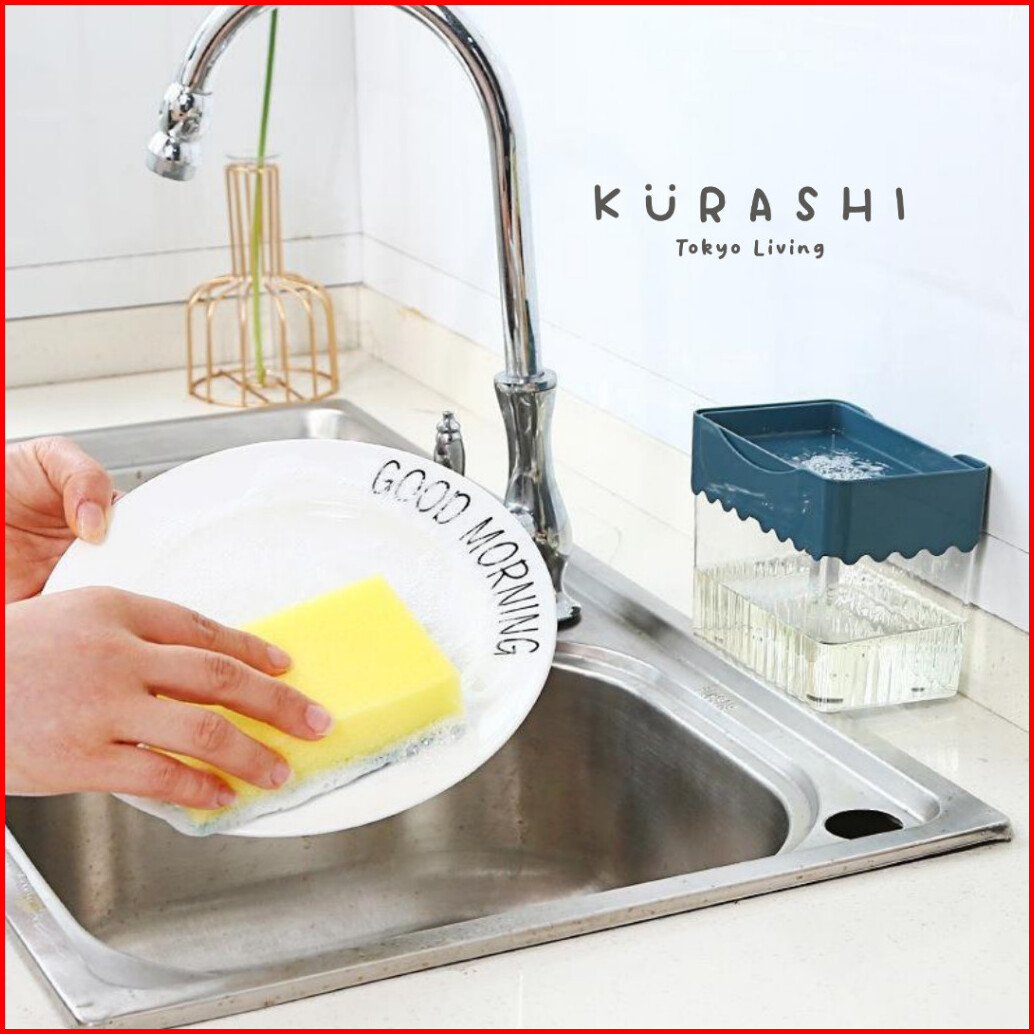 Kurashihisashi Dispenser Sabun Pencet Pintar Wadah Sponge Sabun Dapur Mudah Wadah Soap Dish Dapur Wadah Cuci Piring Sabu