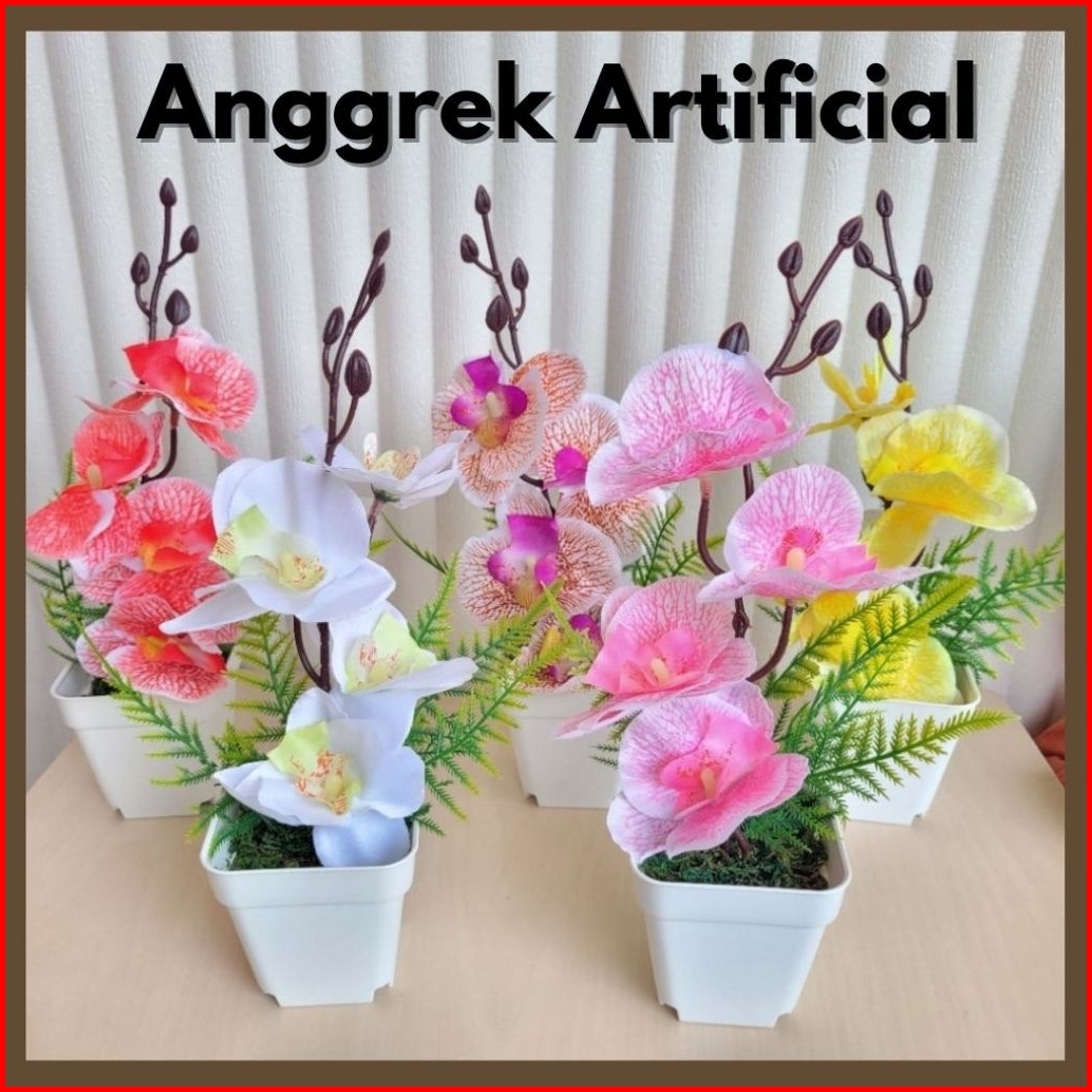 Bunga Plastik Anggrek Bulan Mini Estetik Tinggi 23cm