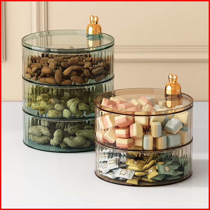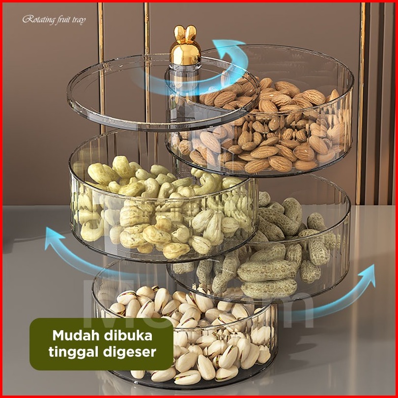 Megam Toples Akrilik Putar Penyimpanan Permen Cemilan Hari Raya Toples Berputar Praktis Terbaru Hsb833