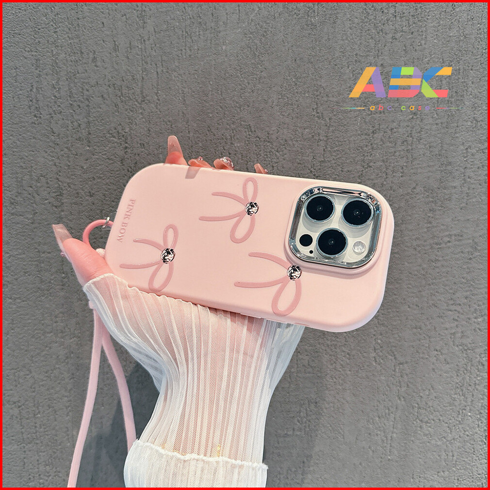 Casing Ponsel Anti Jatuh Busur Kartun Sederhana Dengan Gelang Case Untuk Iphone 15 Pro Max Plus 12 13pro 14 11 Plus 6 7