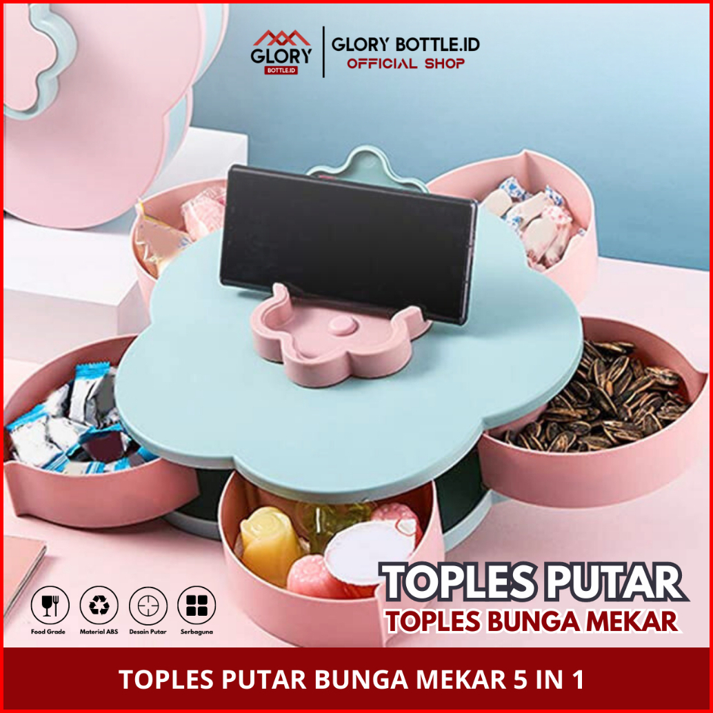 Gb - Toples Bunga Mekar Putar - Toples Makanan Kering - Permen - Toples 5 In 1 Random