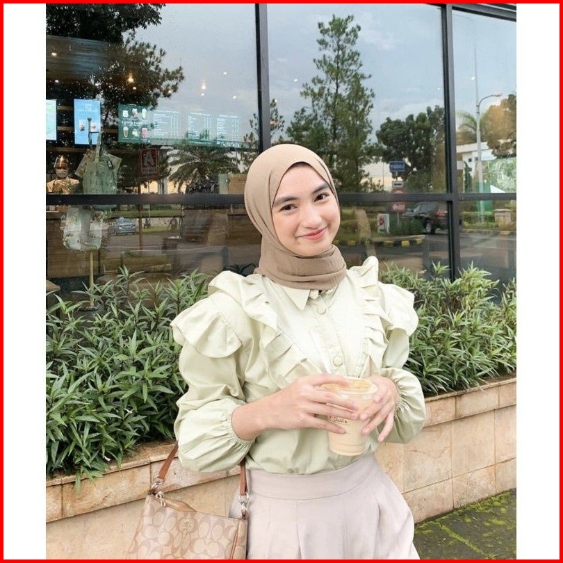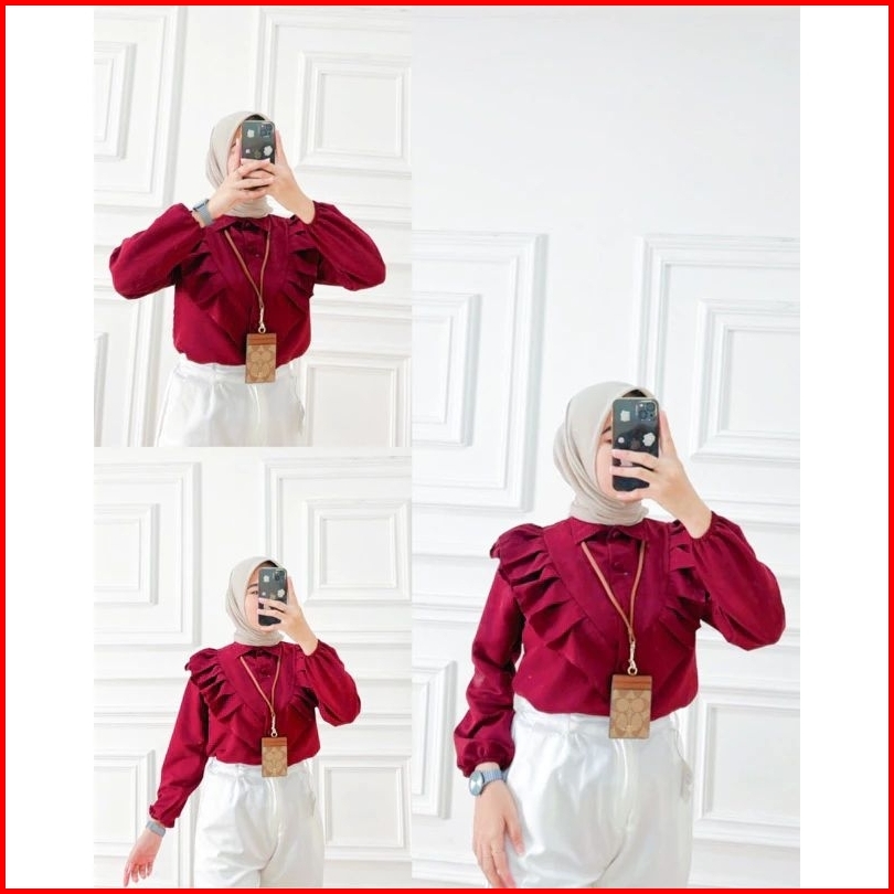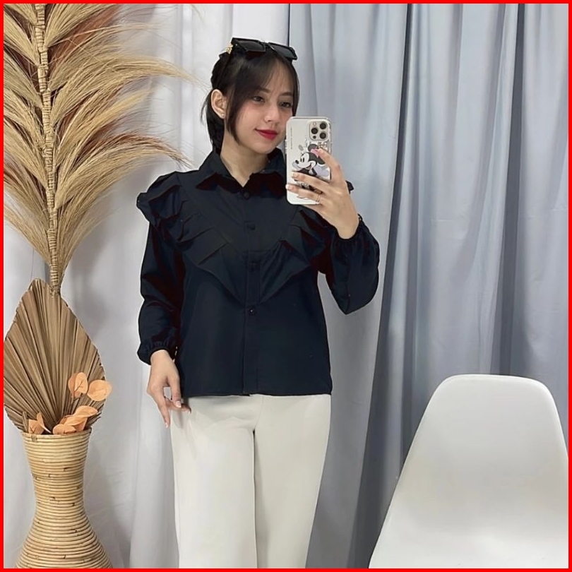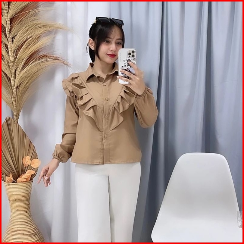Kemeja Ruffle Top Blouse Baju Wanita Murah Kemeja Shirt Hijab Friendly Korean Style Pekanbaru Riau