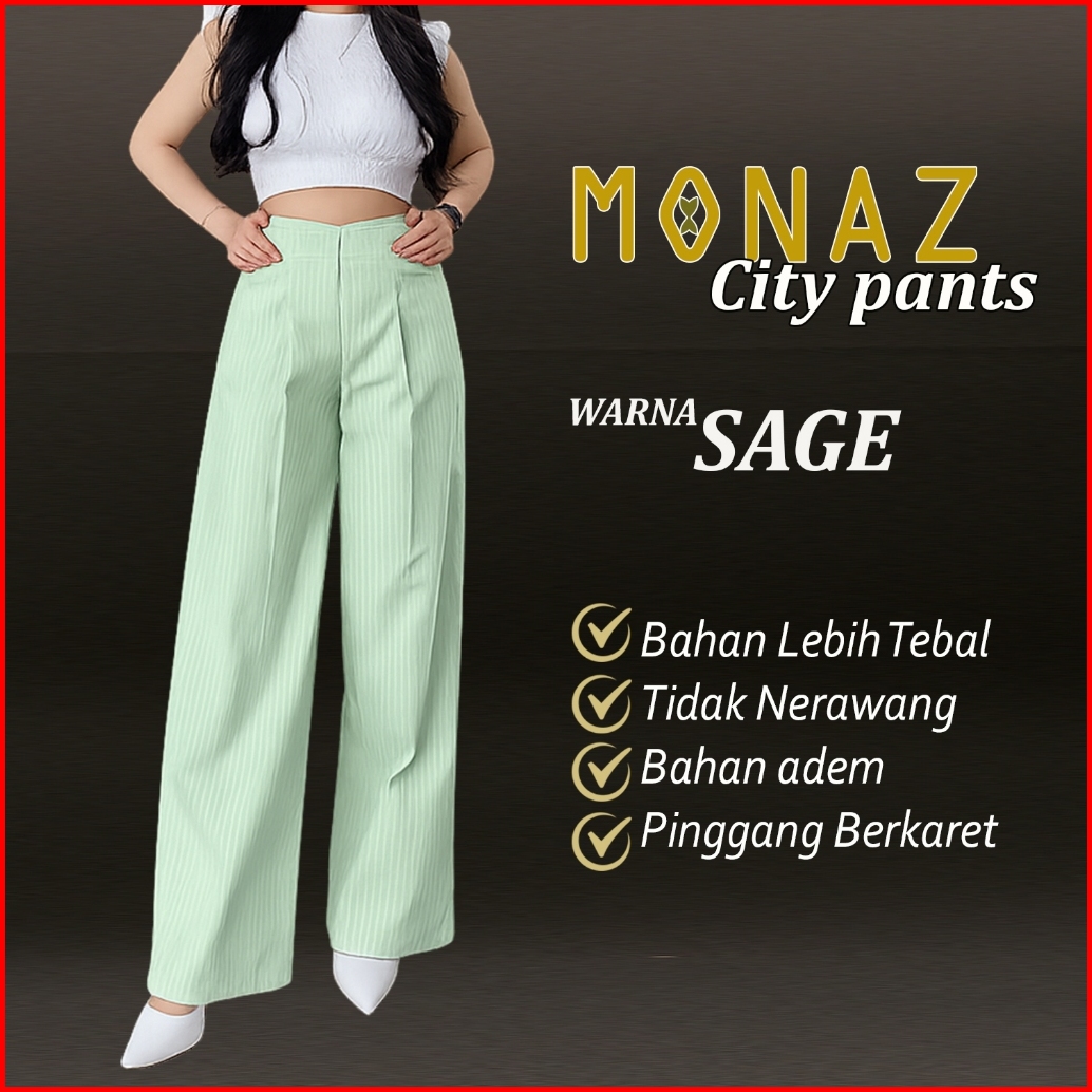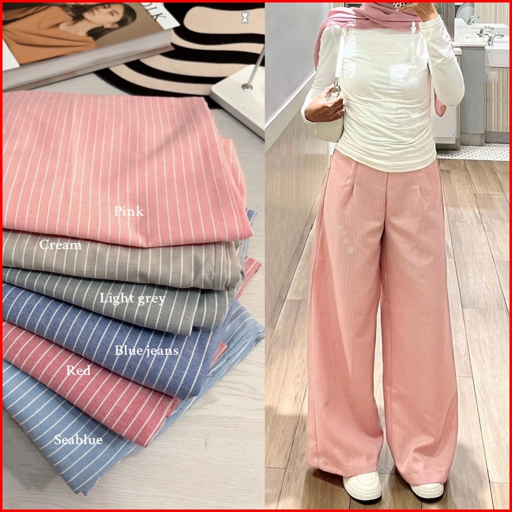 City Pants Celana Panjang Wanita Kantor Kuliah Motif Garis Kulot Pinstripe