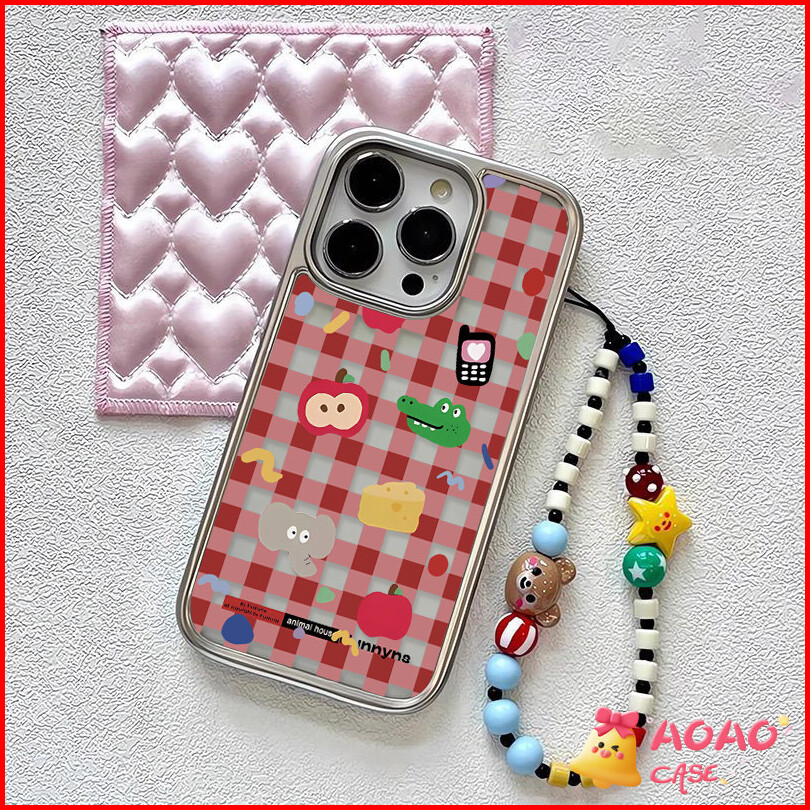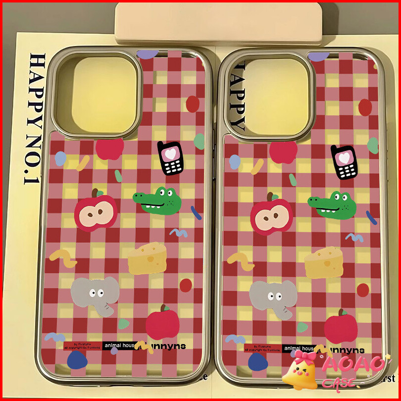 Case Hp Untuk Iphone 15 11 13 14 12 Pro Max 7plus 8plus Xr 7 8 14 15 Plus X Xs Max Se 2020 Pola Kotak Apel Hewan Kecil L