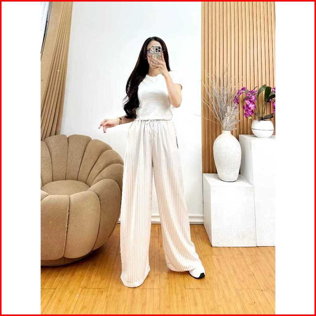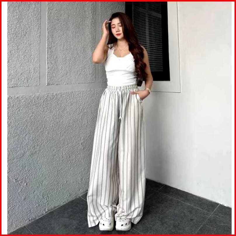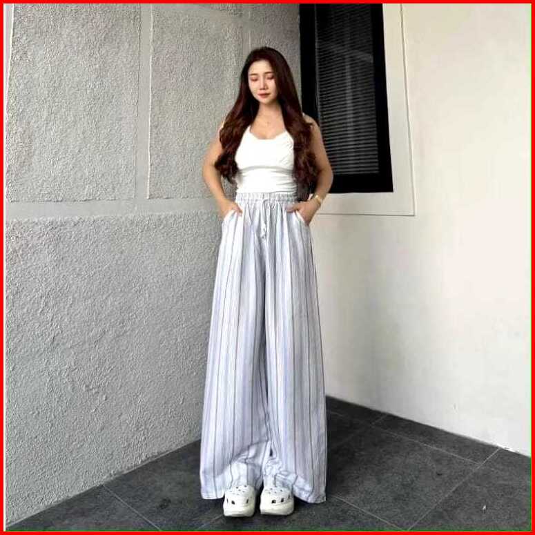 Pecandu-everyday Pants - Strip Pants - Celana Panjang Wanita Baggy Kantor Kuliah - Kulot Pinstripe - Celana Formal Casua