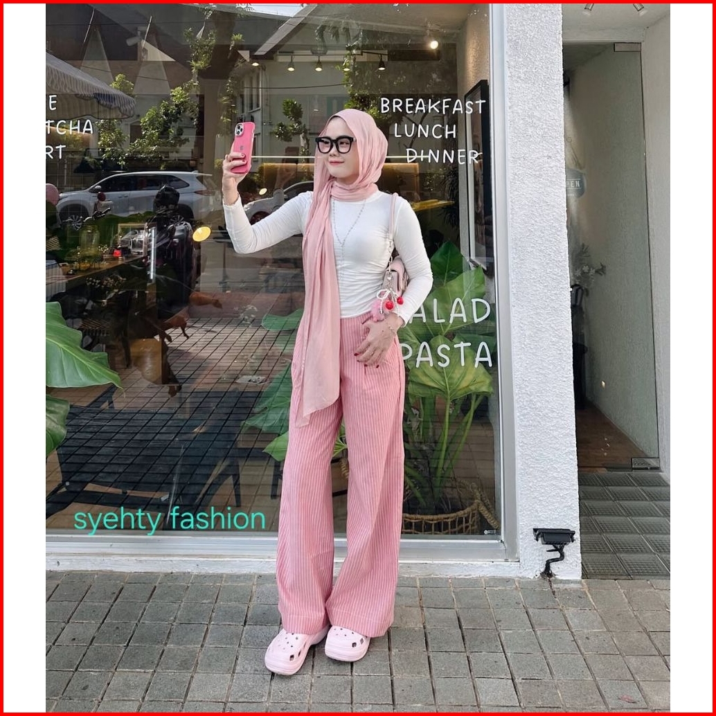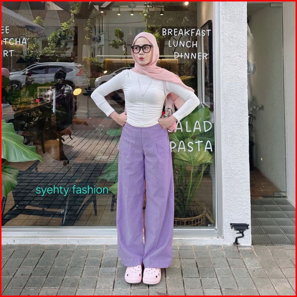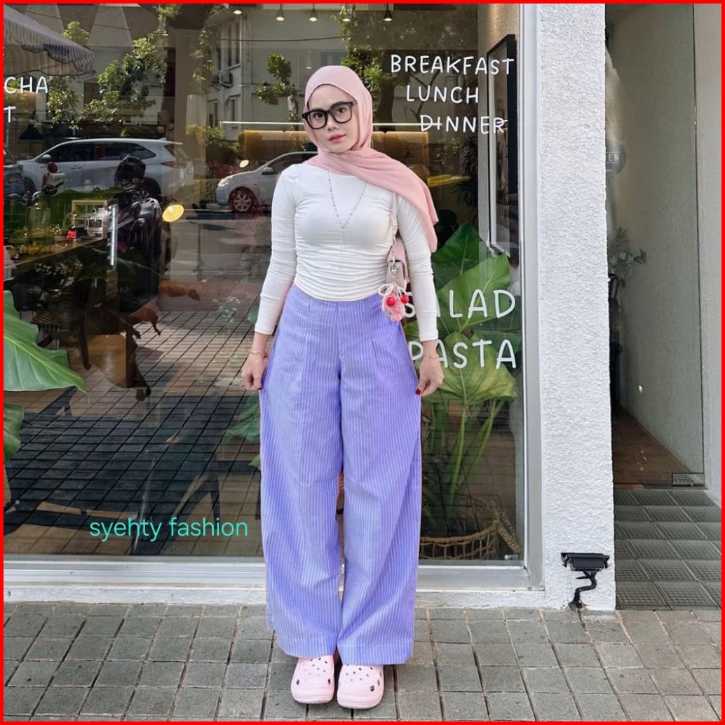 City Pants Celana Panjang Wanita Kantor Tidur Kuliah Santai Motif Garis -garis Kulot Pinstripe