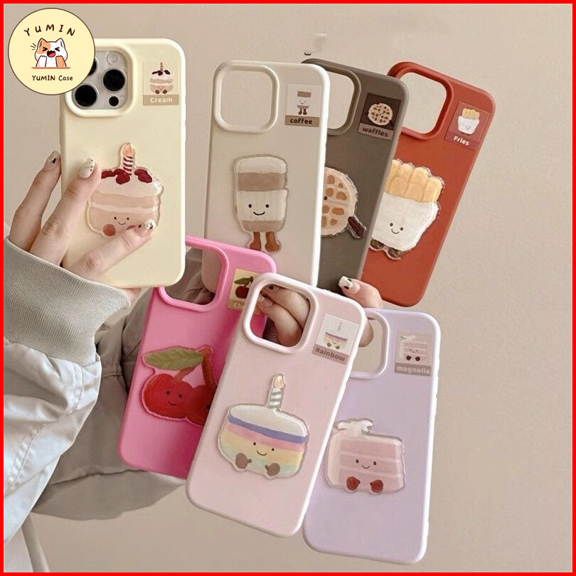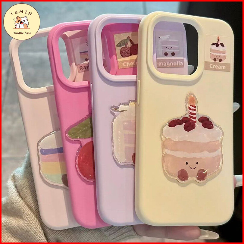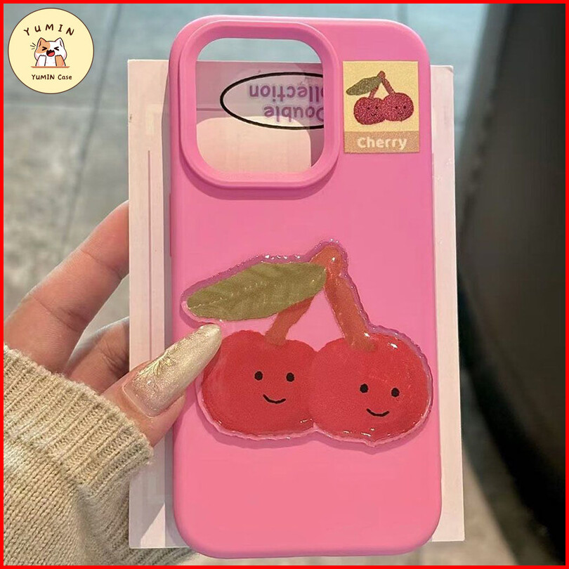 Permen Warna Cair Manis Kartun Kue Ceri Lucu Kasus Kompatibel Untuk Iphone 16pro 13 16 16e 11 15 12 14 Pro Max 16plus 15