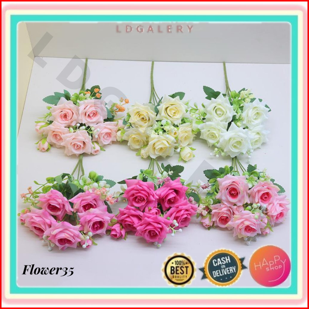 Ldg Fl35 Tanpa Pot Bunga Mawar Bouqet Tanaman Hias Artificial Bunga Tangkai Dekorasi Ruangan Import Murah