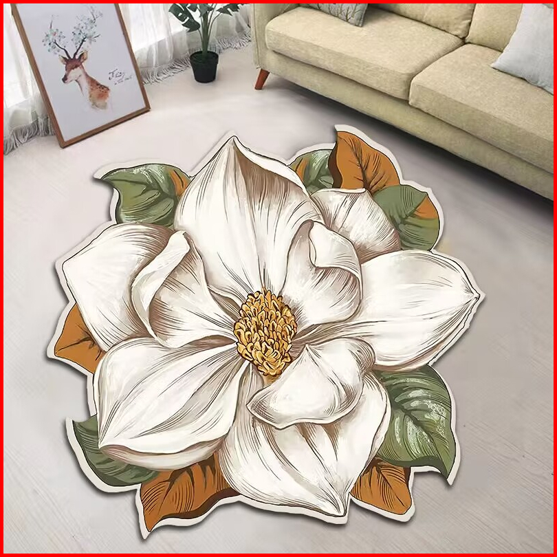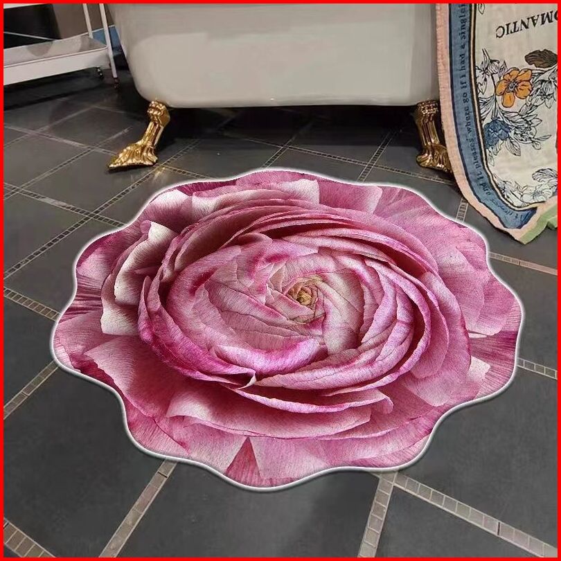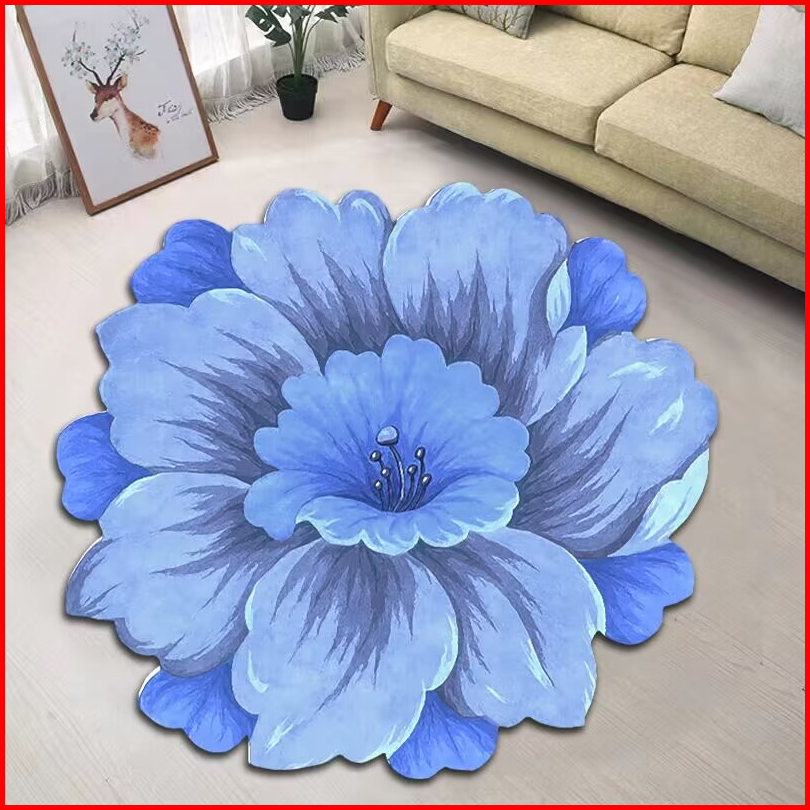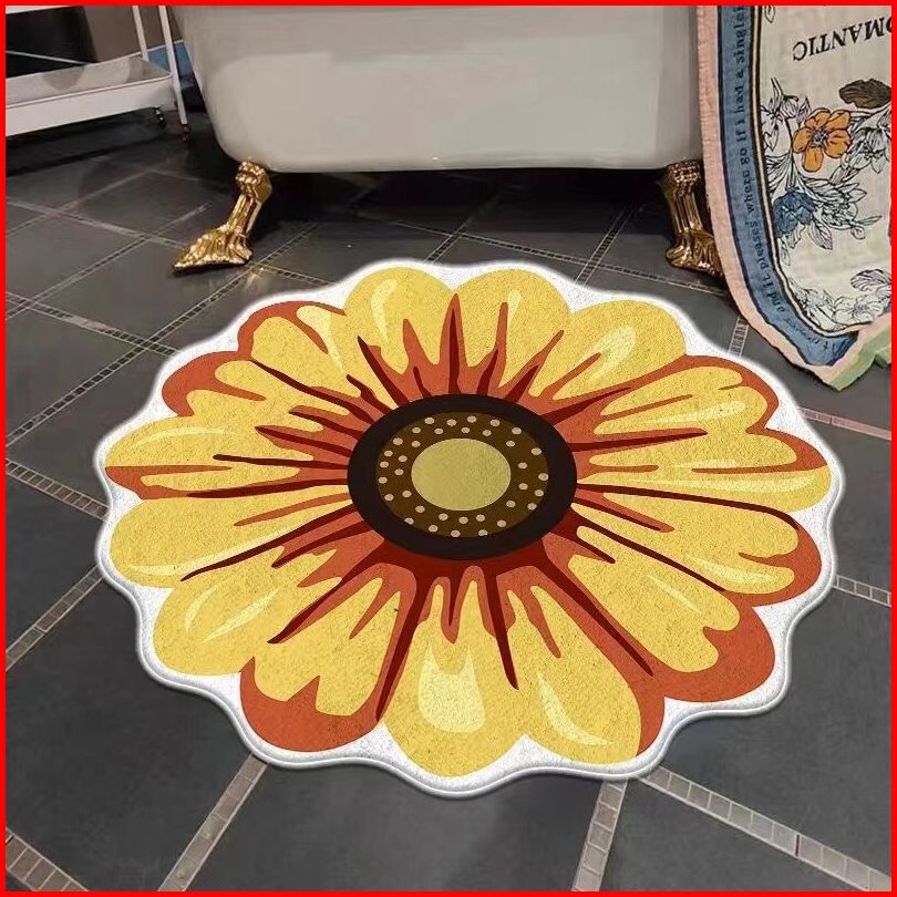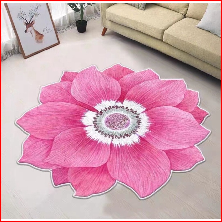 Karpet Bulat Anti Slip Bentuk Bunga Bahan Imitation Cashmere