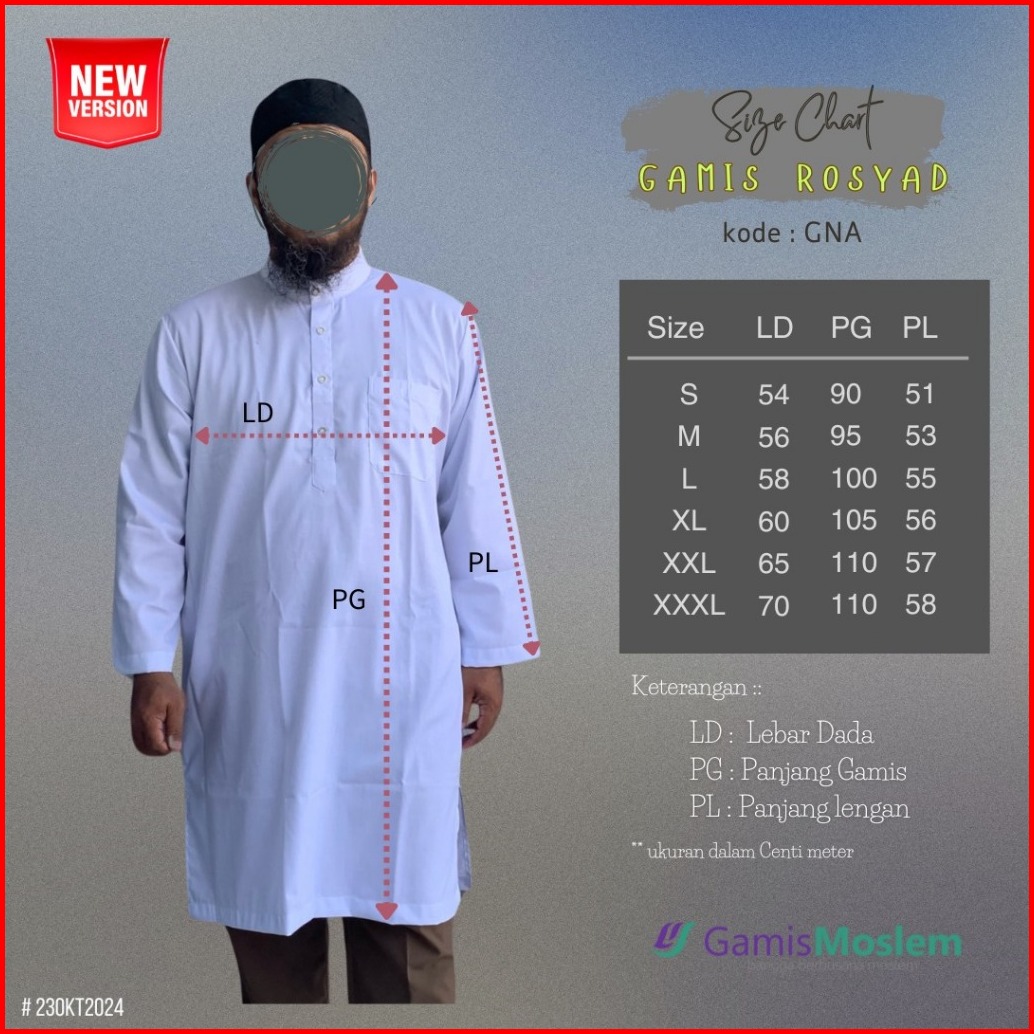 Gamis Pria Lengan Panjang Rosyad Gna Katun Toyobo S - Xxxl