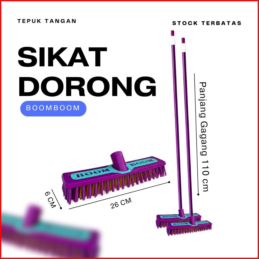 Sikat Dorong Boom-boom Clean Sikat Wc Kamar Mandi Gagang Panjang 110cm Ungu Pink