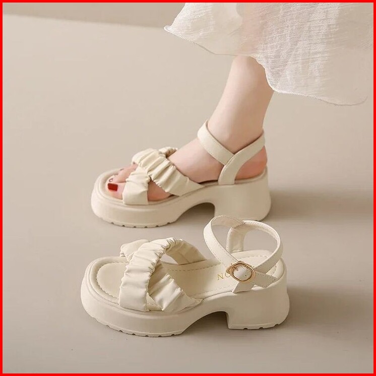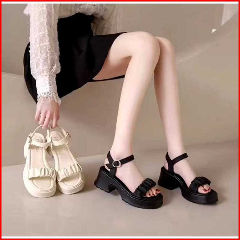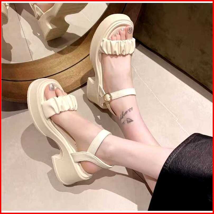 Sandal Wedges Cewek 5cm Viral 2025 Sandal Hak Tebal Kekinian Gen Z