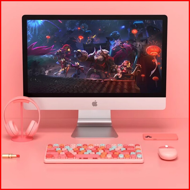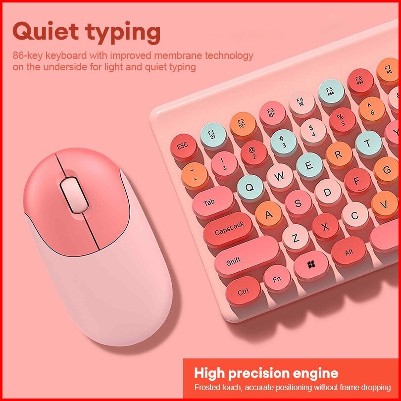 Colorful Wireless Keyboard Mouse Set 86 Key Bluetooth 2.4g Rechargeable Gaming Office Portable Ergonomic Design