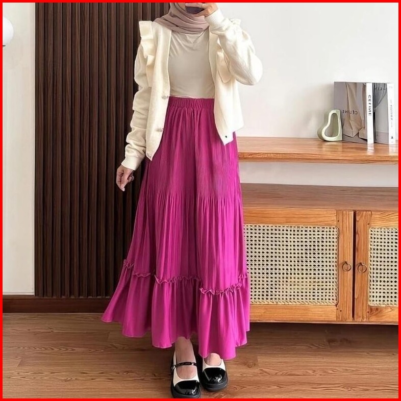 Rok Panjang Plisket Clara 101 Susun Kerutan Lidi Cabang Bawahan Muslim Mayung Terbaru Termurah Terlaris Rok Skirt Rok