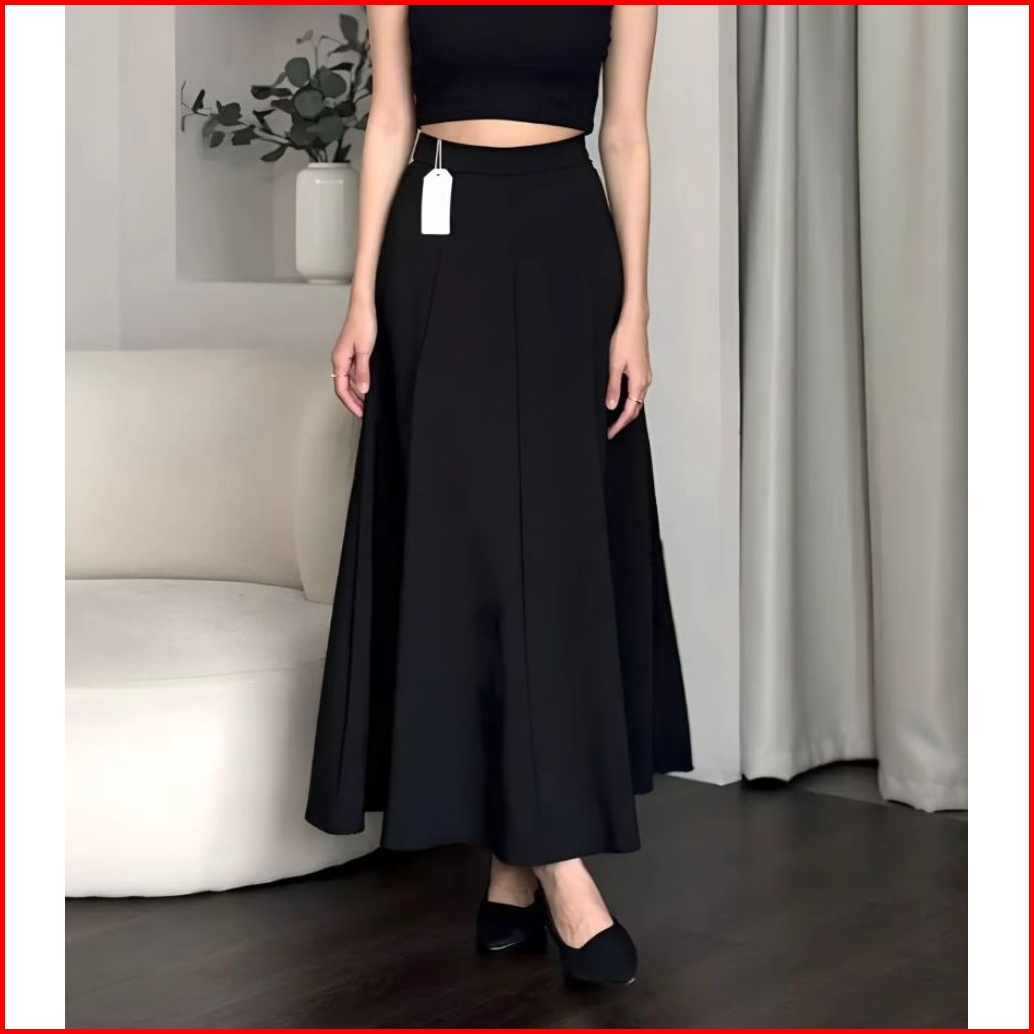 Audy Skirt - Korean Loose Maxi Skirt Rok Wanita Anti Kusut Polyester - Rok Flare Wanita