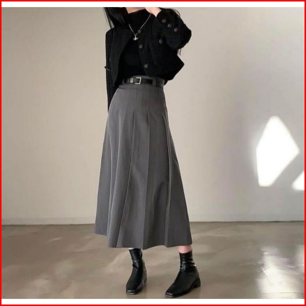 Rok Midi Higwaist - Rok Wanita Polos Bahan Adem - Flare Wanita Kekinian Maktib Collection
