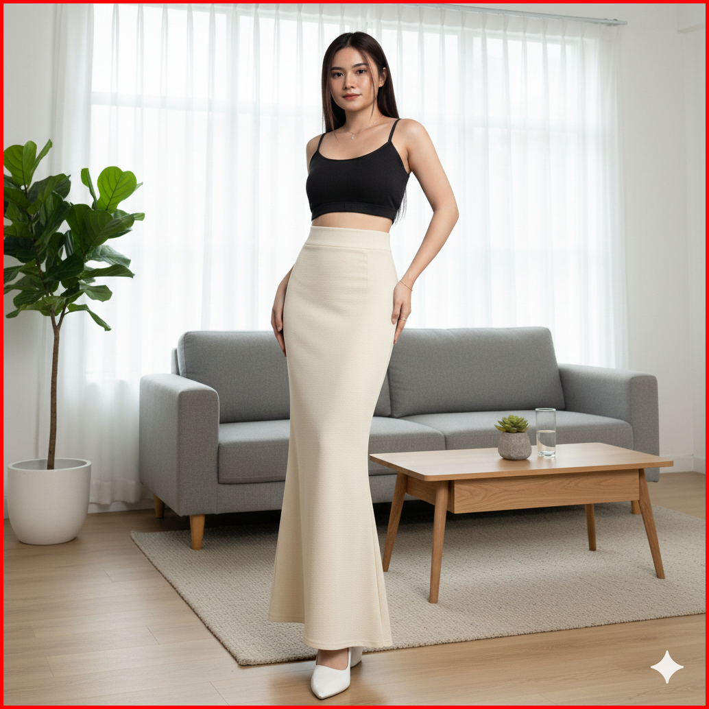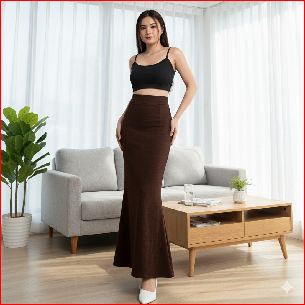 Lunar Mermaid Maxi Skirt - Rok Wanita Kekinian Desain Mermaid Bahan Scuba Premium Pinggang Elastis