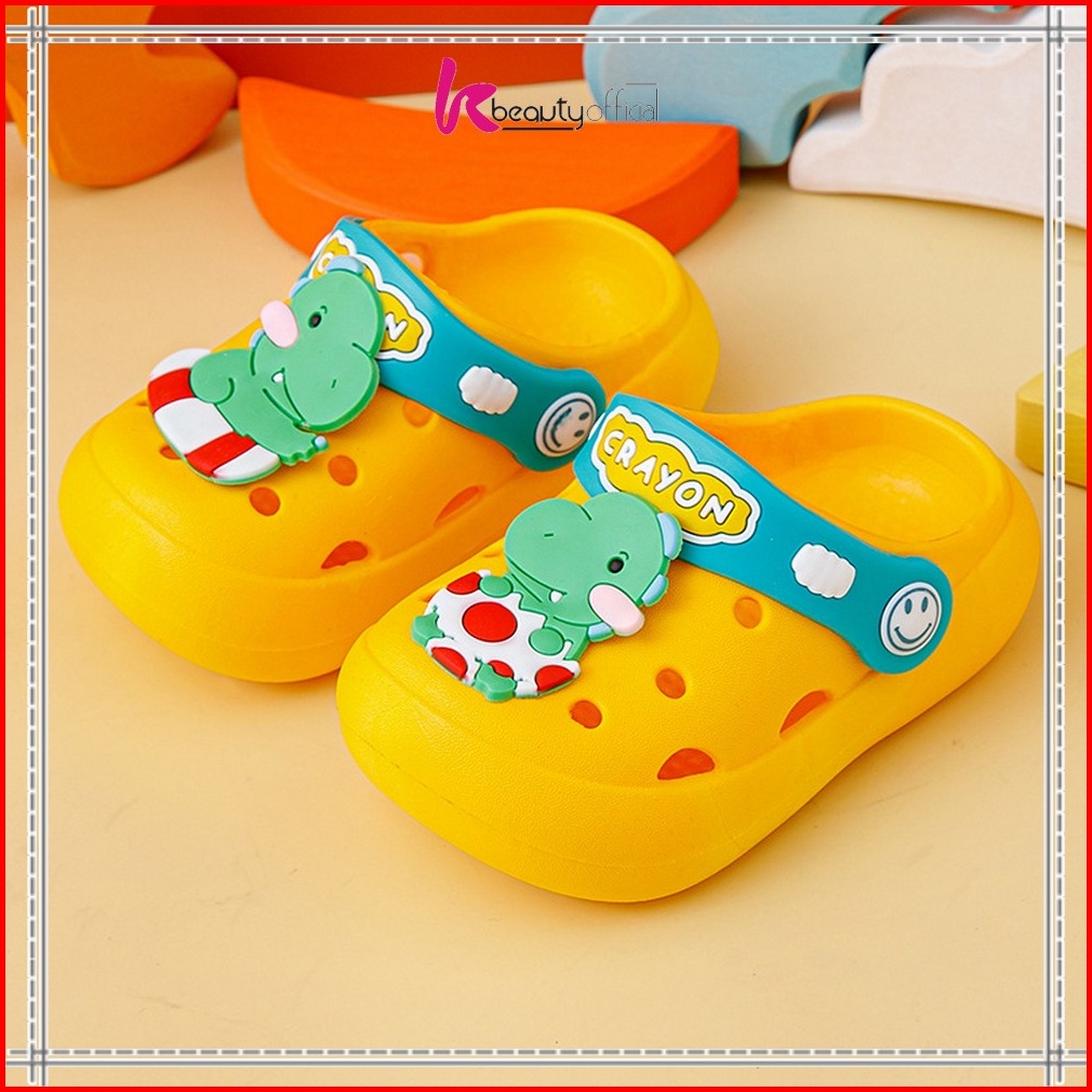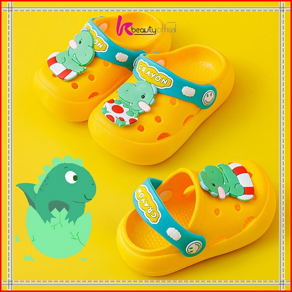 Kb-s39 Sandal Sepatu Anak Dengan Tali Belakang Bahan Eva Motif Dinosaurus Lucu Anti Slip Sendal Peach Waterpoof Import C