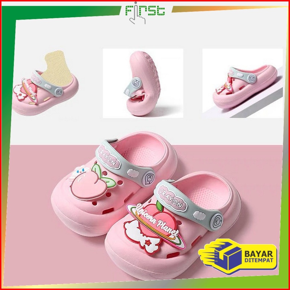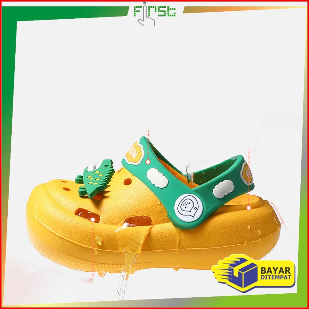 Fh-s39 Sandal Sepatu Anak Dengan Tali Belakang Bahan Eva Motif Dinosaurus Lucu Anti Slip Sendal Peach Waterpoof Import C