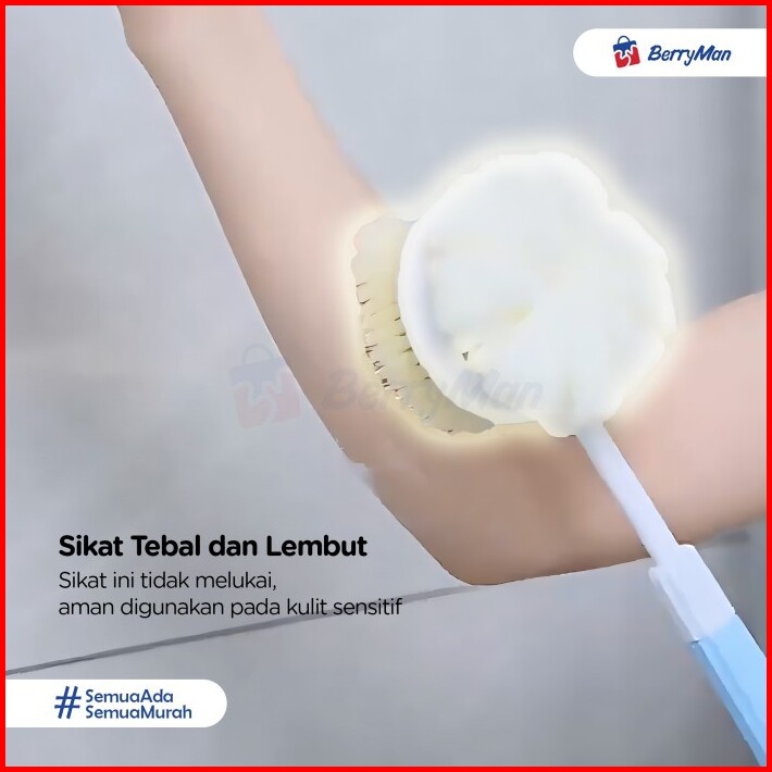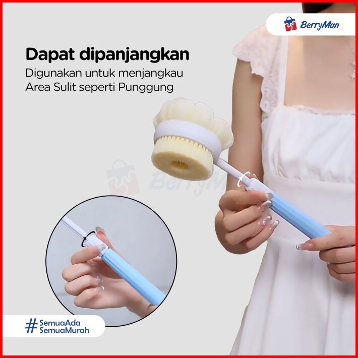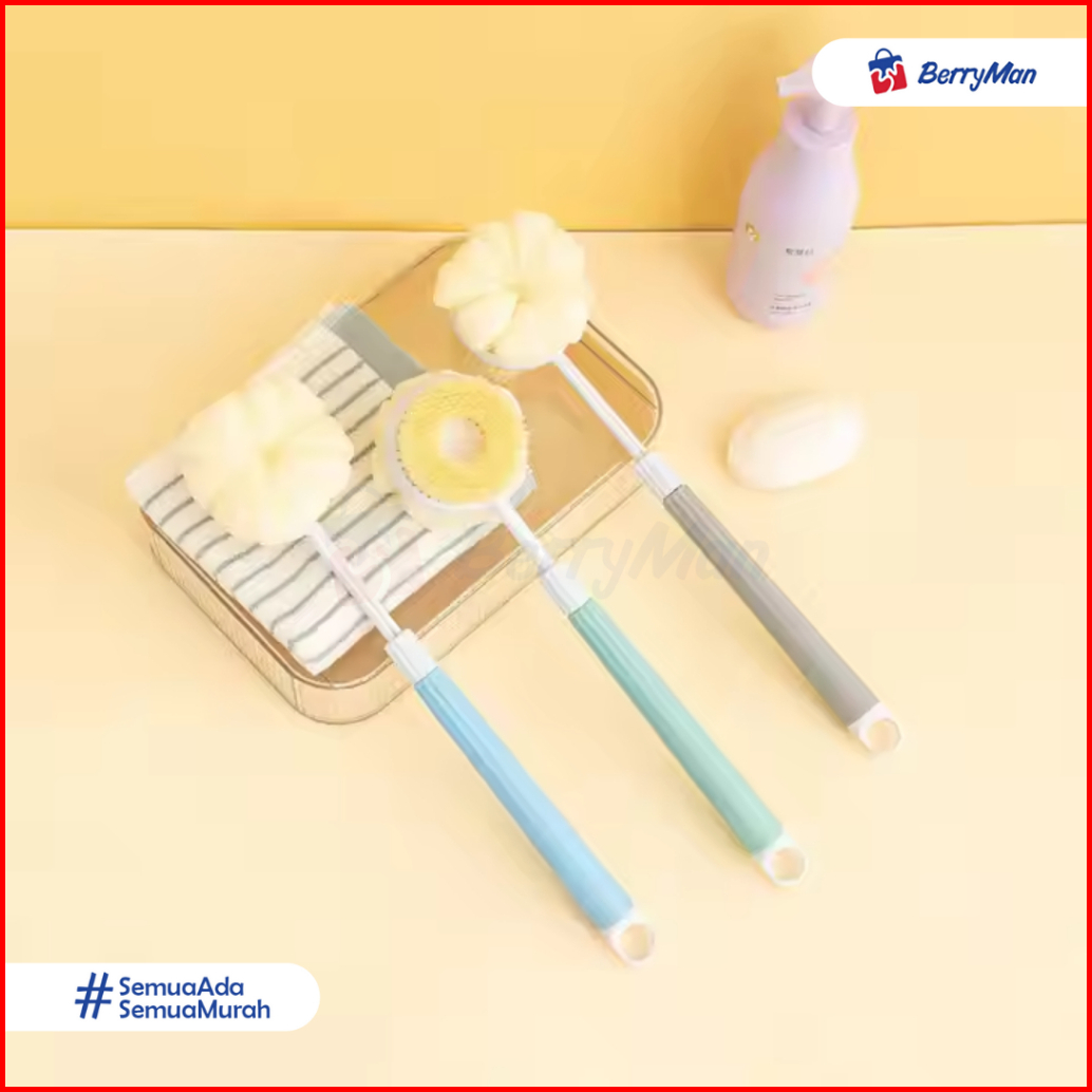 Sikat Gosok Punggung Tarik 2 In 1 Gagang Panjang Shower Puff Eksfoliasi Scrub Badan Bulu Halus
