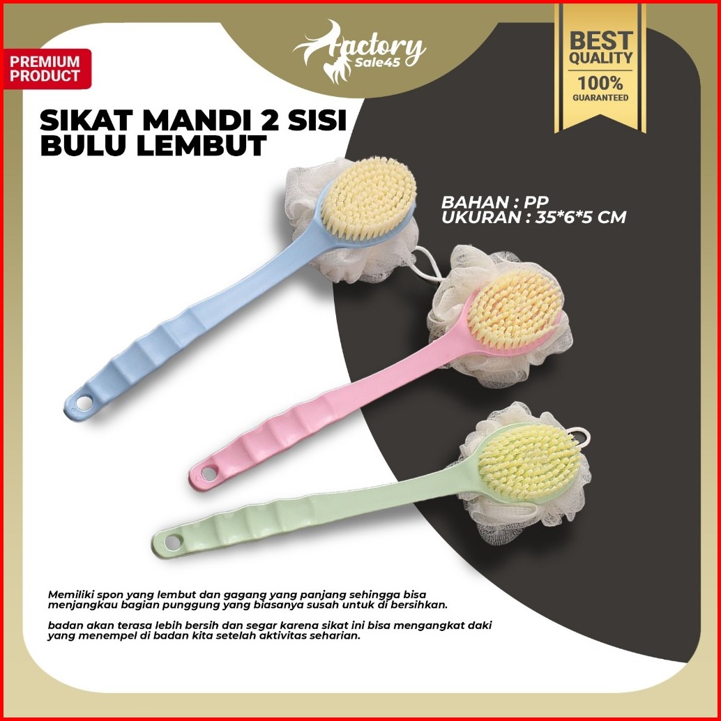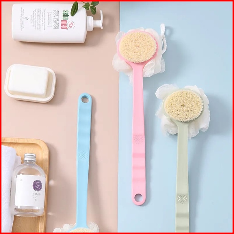 Shower Puff Sikat Gosok Punggung Gagang Panjang Spons Mandi 2 Sisi F988