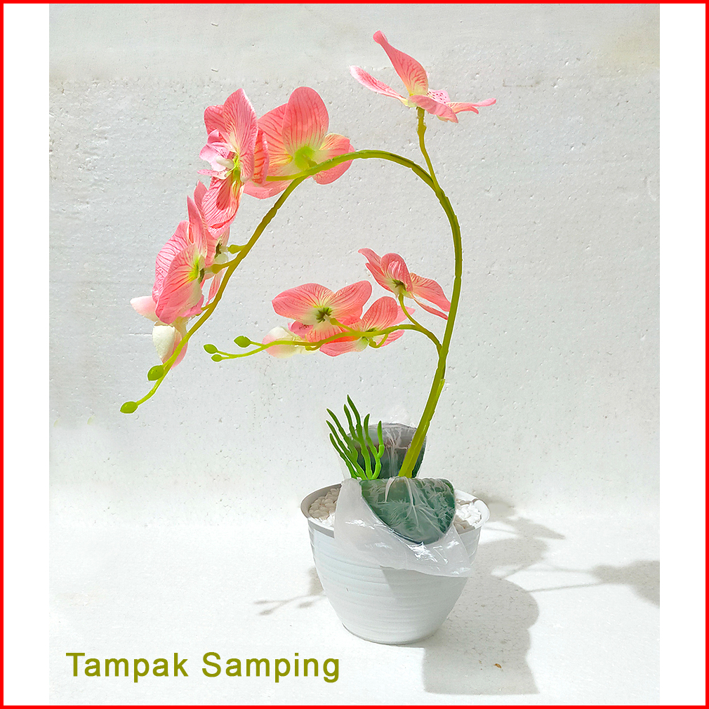 Bunga Anggrek Artificial Buatan Dan Pot Meja Hiasan Dekorasi Elegant