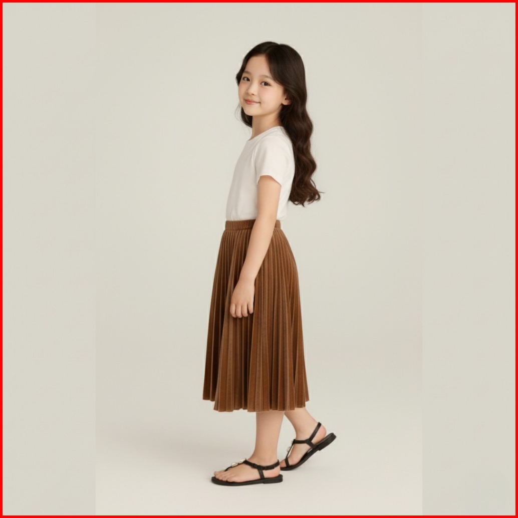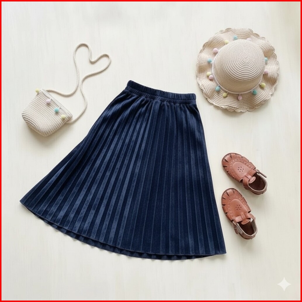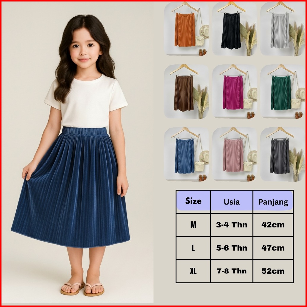 Rok Plisket Anak Perempuan Bahan Velvet Halus Modis Nyaman Dipakai Sehari-hari