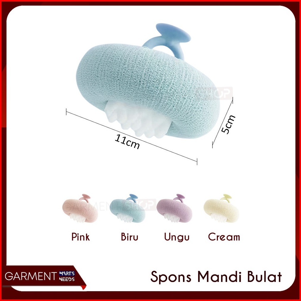 Spobuba - Spons Mandi Bulat Penghilang Daki Sikat Kulit Gosok Pijat Bahan Lembut Premium Quality Dengan Pegangan