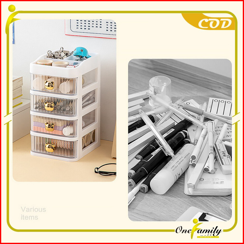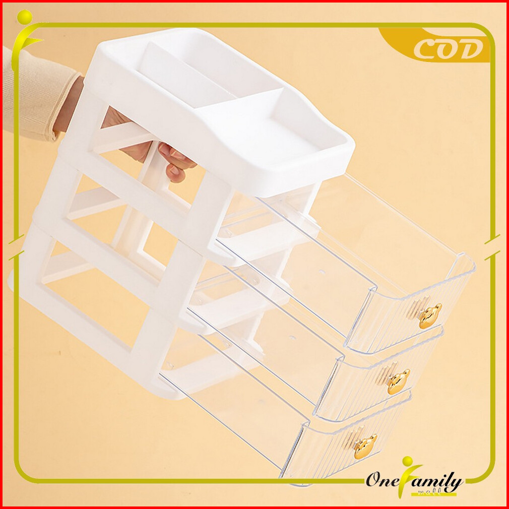 One-k166 Rak Kosmetik Serbaguna 3 Laci Tempat Make Up Storage Box Bear Rak Kotak Penyimpanan Alat Tulis Desktop Drawer R