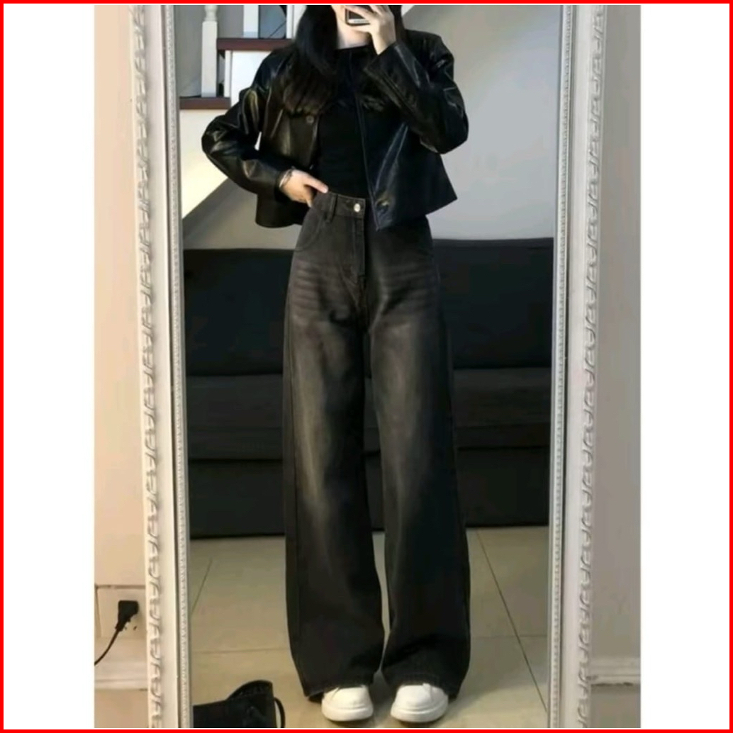 Celana Jeans Baggy Wisker Gombrong - Celana Jeans Wide Leg Korean Style - Celana Jeans Gombrong Skena Style