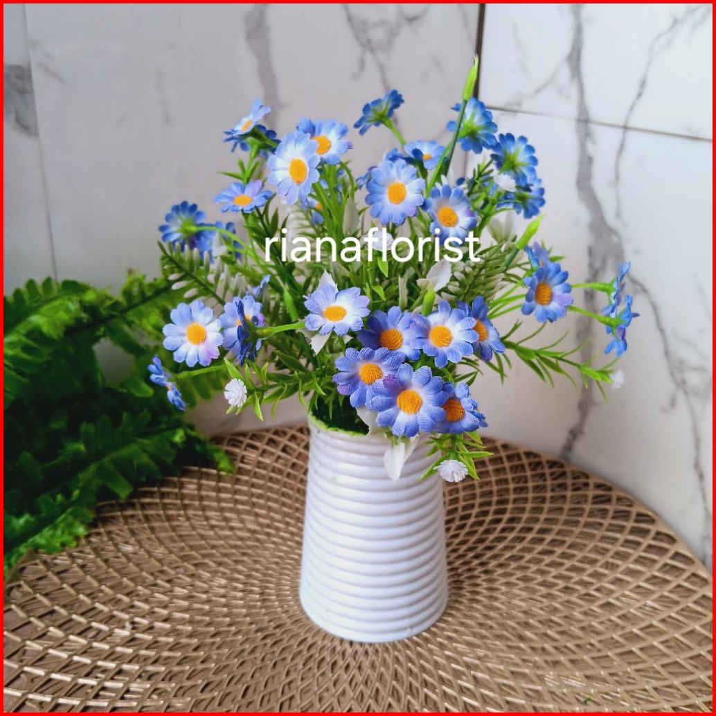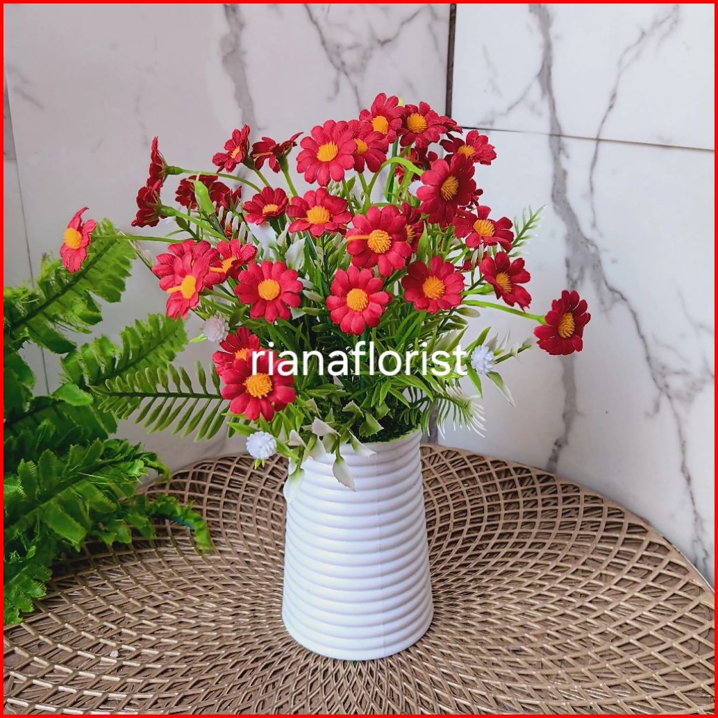 Bunga Krisan Mini Artificial Vas Ulir Melamin