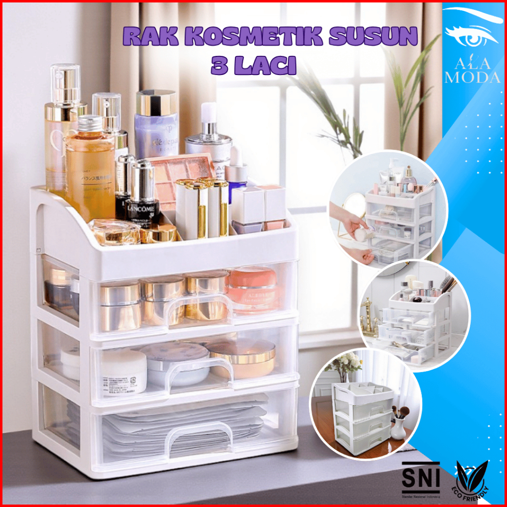 Ala Moda Rak Kosmetik Susun 3 Laci Tempat Penyimpanan Kosmetik Multifungsi