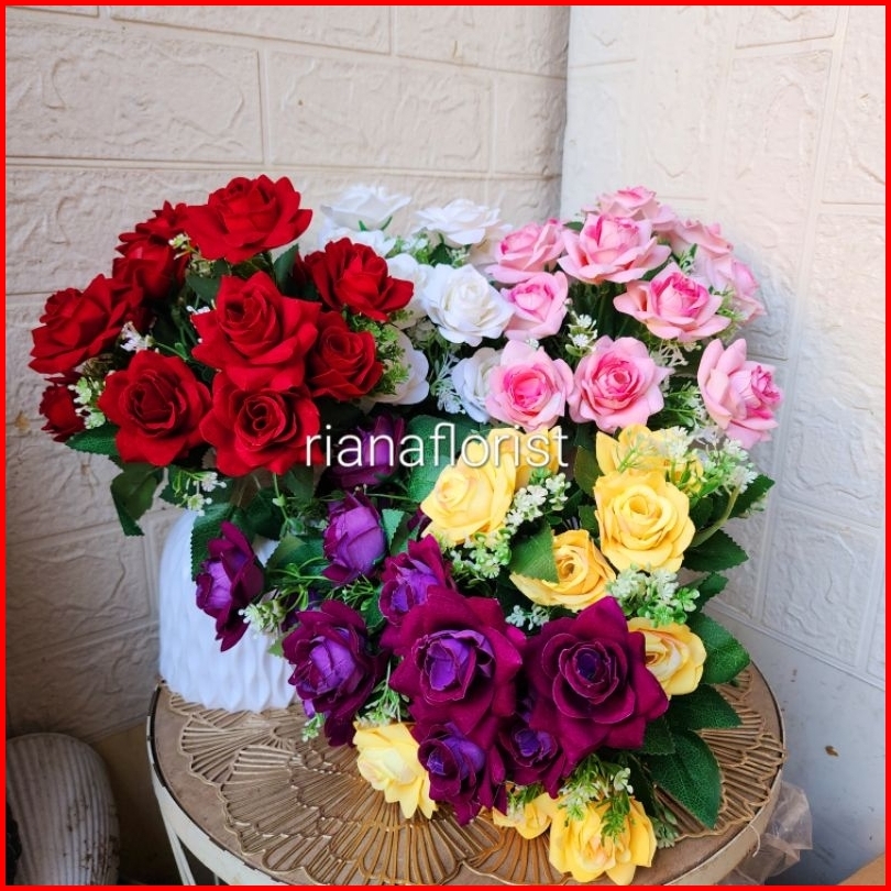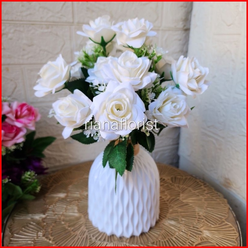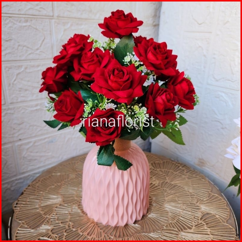 Bunga Mawar Artificial Vas Giardino Mewah