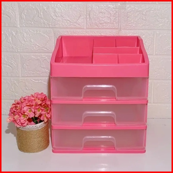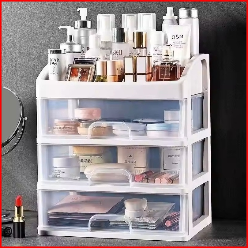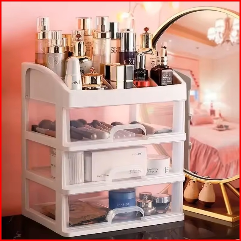 Penyimpanan Multifungsi 3 Laci Makeup Organizer Rak Make Up Susun Tempat Kosmetik Multifungsi