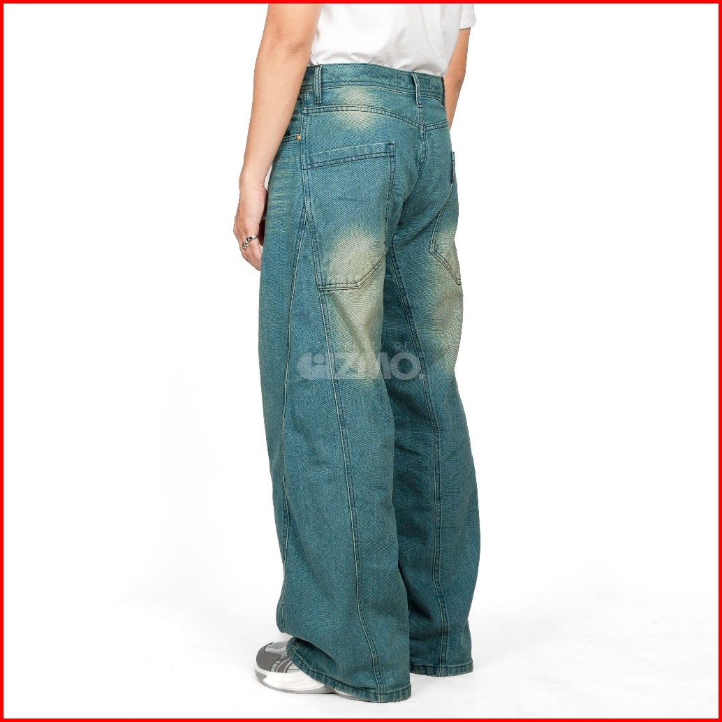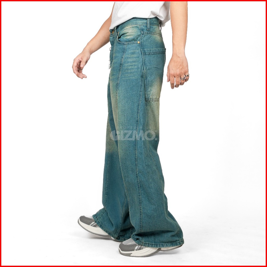 Gizmo - Baggy Jeans Pecah Pola - Split Flow Urban Blue - Streetwear Baggy Style- Lebar Gombrong Skena - Celana Denim Car