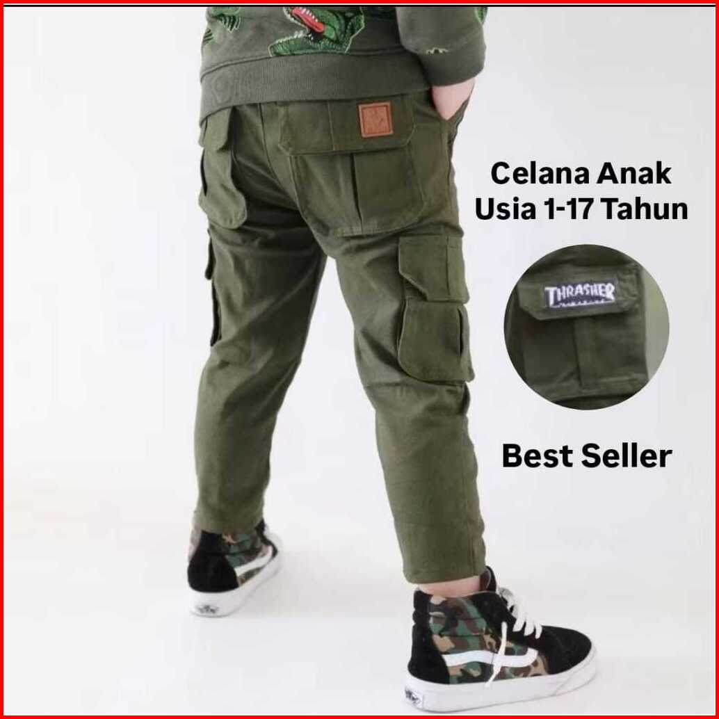 Celana Panjang Jeans Anak Cargo Dari Usia 3-17 Tahun