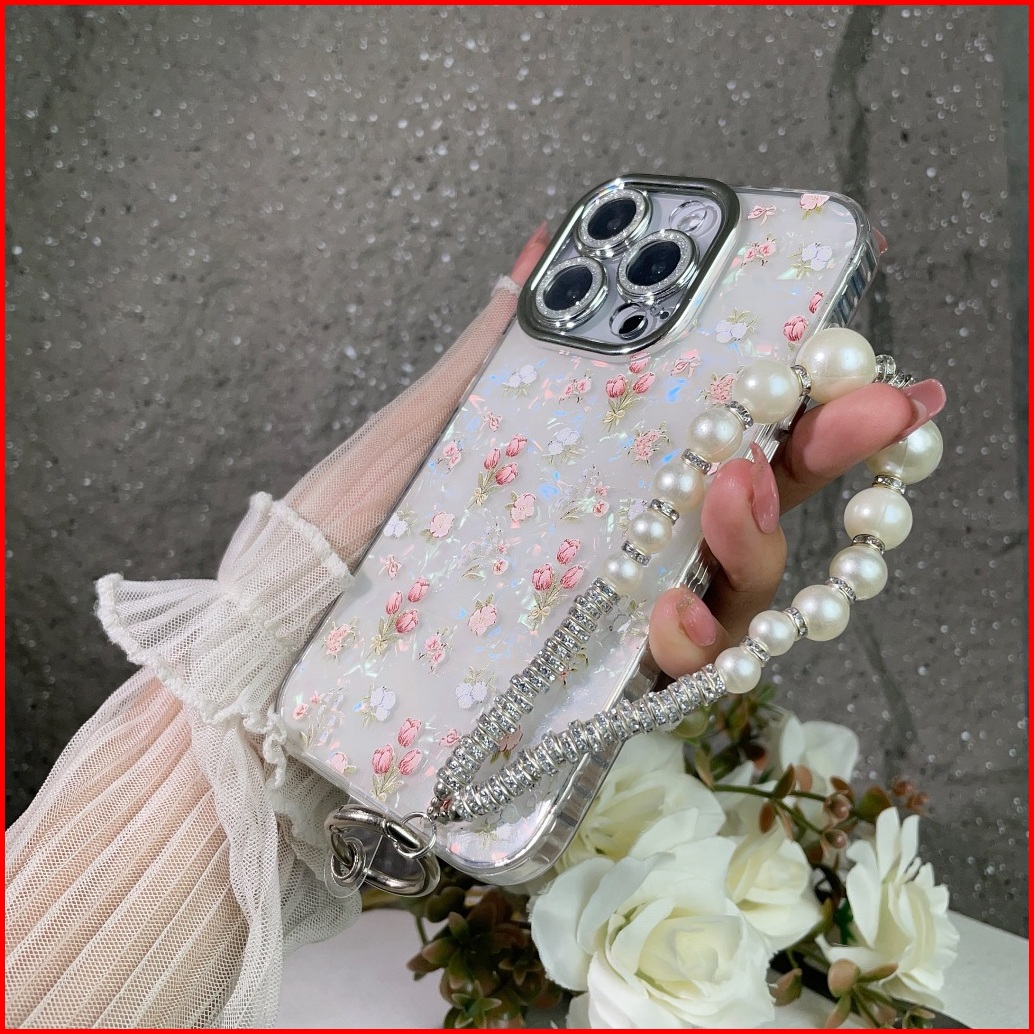 Case Chain Flower Glossy Case Compatibel For Iphone11xr Iphone7 8 Se2 Se3 7plus 8plus Xs 12mini 15plus 14 14promax 13 Tr